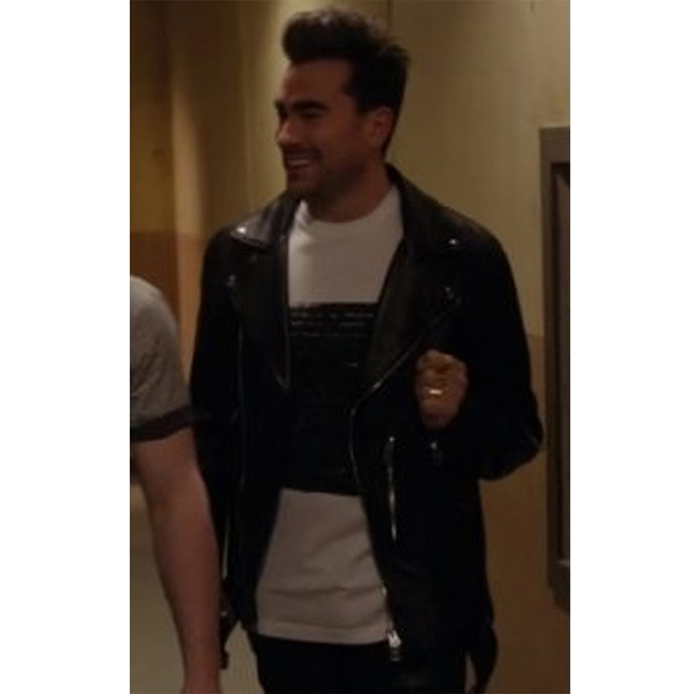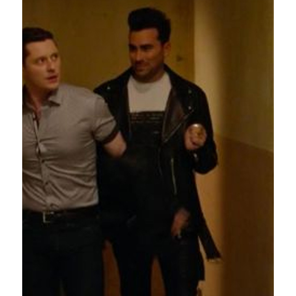 Schitt’s Creek S06 David Rose Black Biker Leather Jacket