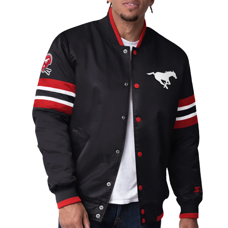 Calgary Stampeders Scout I Full-Snap Black Satin Jacket