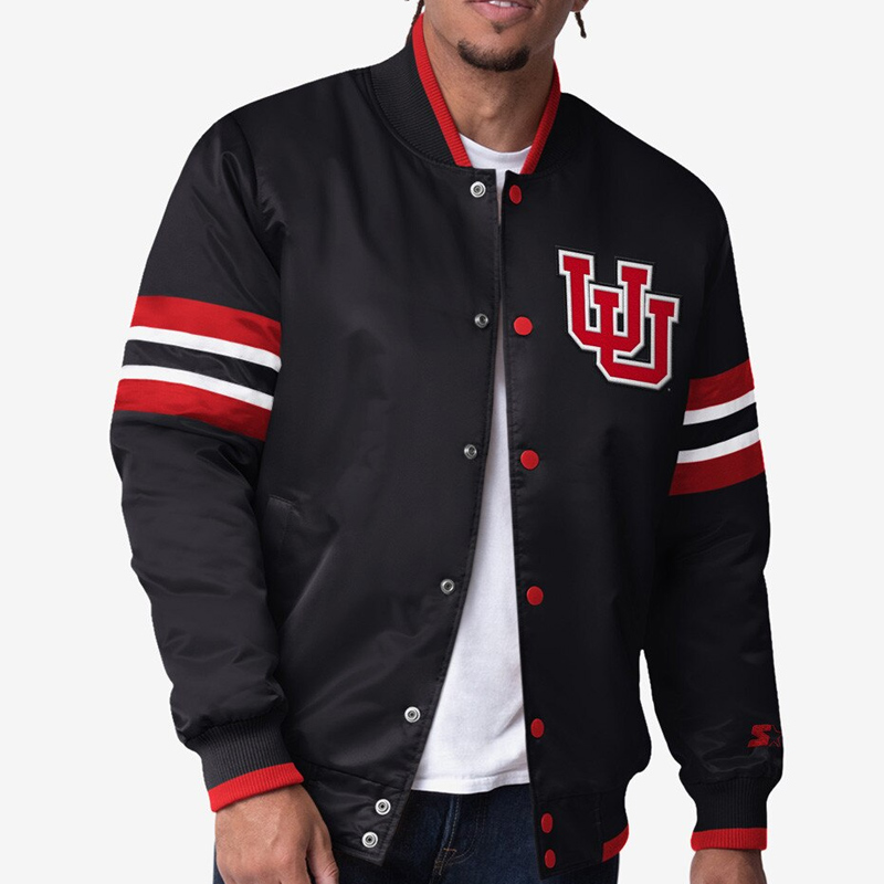It is made with using high quality satin material and is easy to carry yet very wearable in any season. It is lined with viscose fabric which makes it very soft and gentle to the skin. Featuring a ribbed collar, the Scout I Utah Utes Black Jacket has vintage style appeal and the snap tab front placket provides convenient on and off wear.