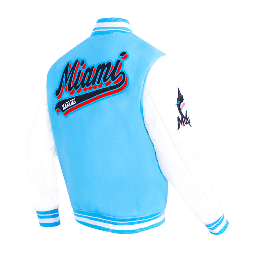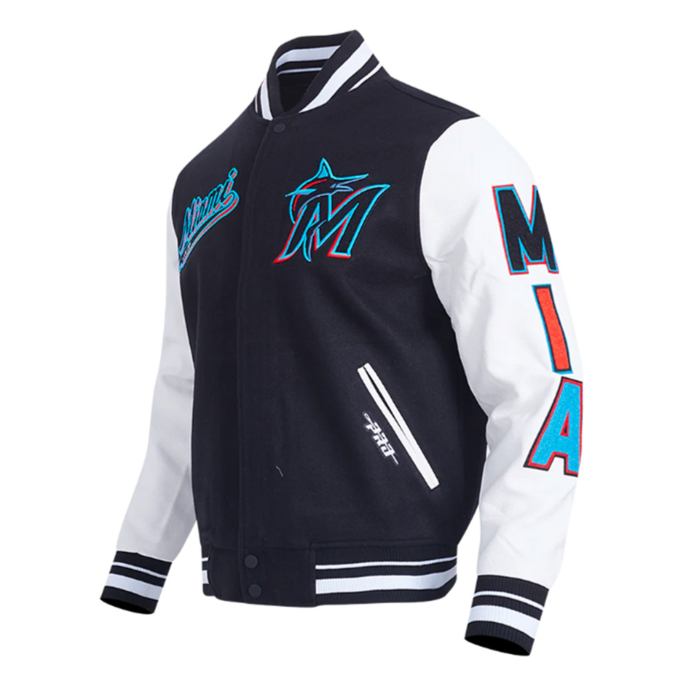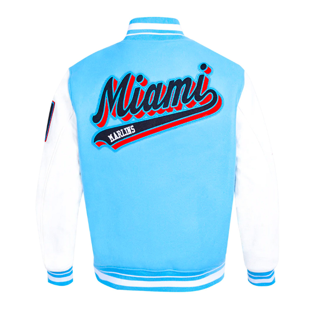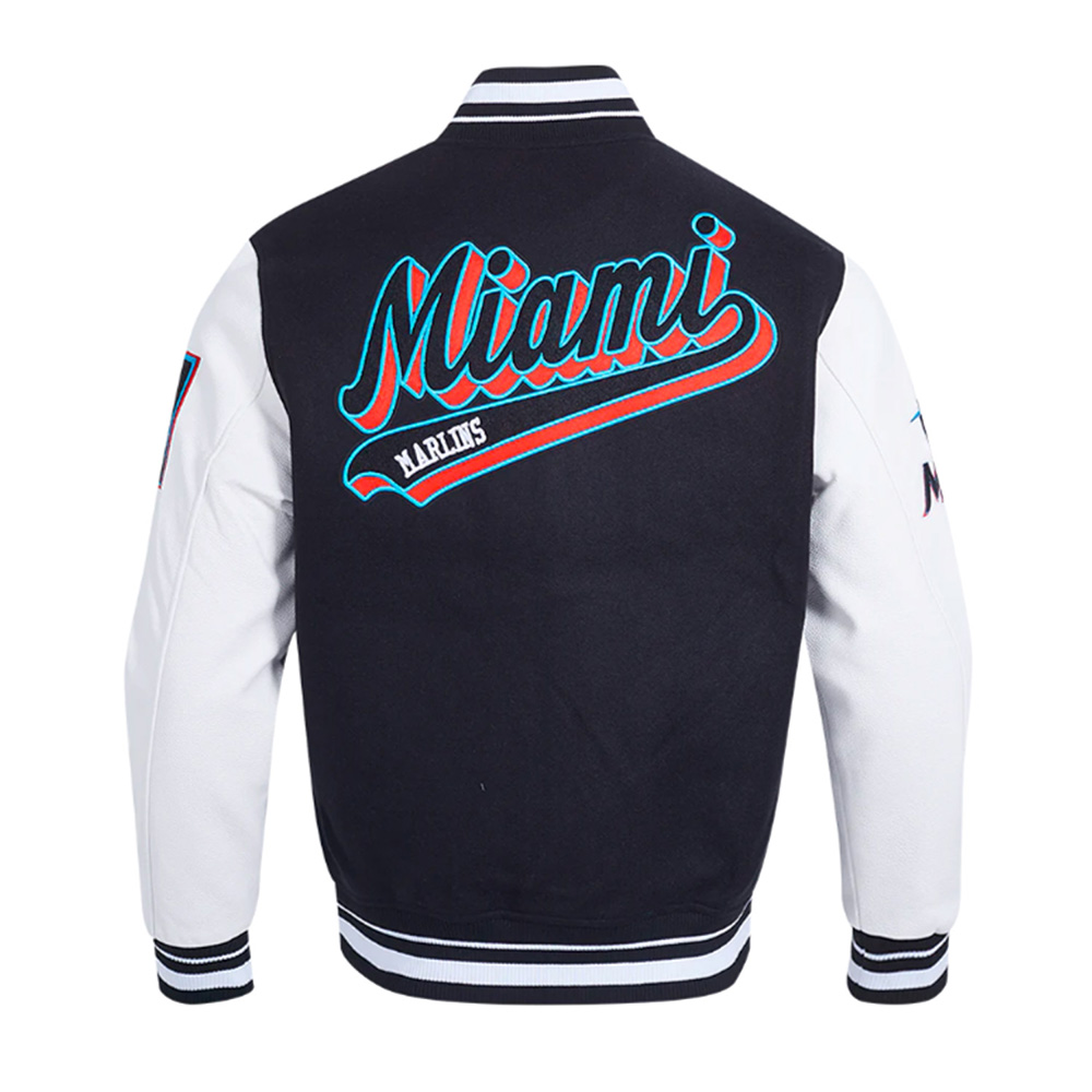 Classic Rib Miami Marlins Script Tail Wool/Leather Varsity Jacket