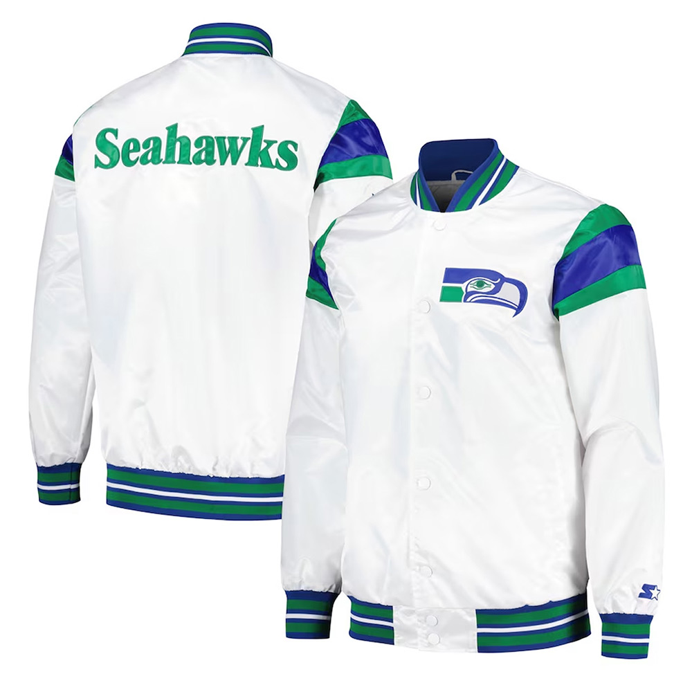 We’re proud to present our new creation – The Seattle Seahawks midweight white jacket – the elegant way to support your football team. Most suitable for male and female visitors of the site, this jacket will feature only the best traits of excellent leather, unique stitching, and accurate patterns of the Seahawks’ emblem on its back part.