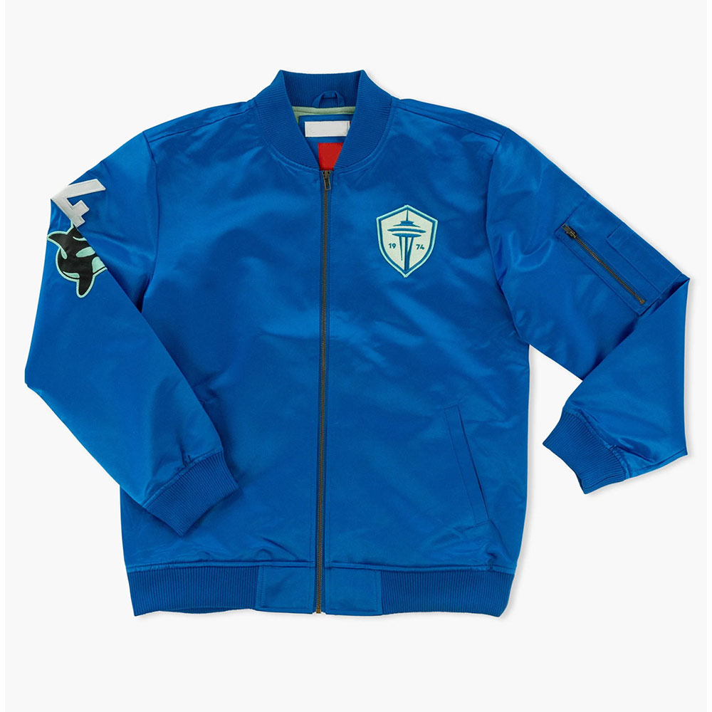 Seattle Sounders now has introduced the Seattle Sounders royal jacket for both men and women and this style is influenced by the basketball team. The jacket has been made of satin material that gives the jacket a somewhat soft and luxurious look and feel, the inner lining of the jacket is made of viscose fabric. The royal blue color of the jacket is very lively and ideal for any Sounders fan. The collar, the sleeves, and the bottom part of the Seattle Sounders royal satin jacket are decorated with ribbing that is typical for classic models, and the front zipper fastening will help to put it on easily. The sleeves are elongated and fitted with the symbols and functional zipper pockets. It has two waist side pockets and two inside pockets, which means you do not have to leave behind some of your necessities.