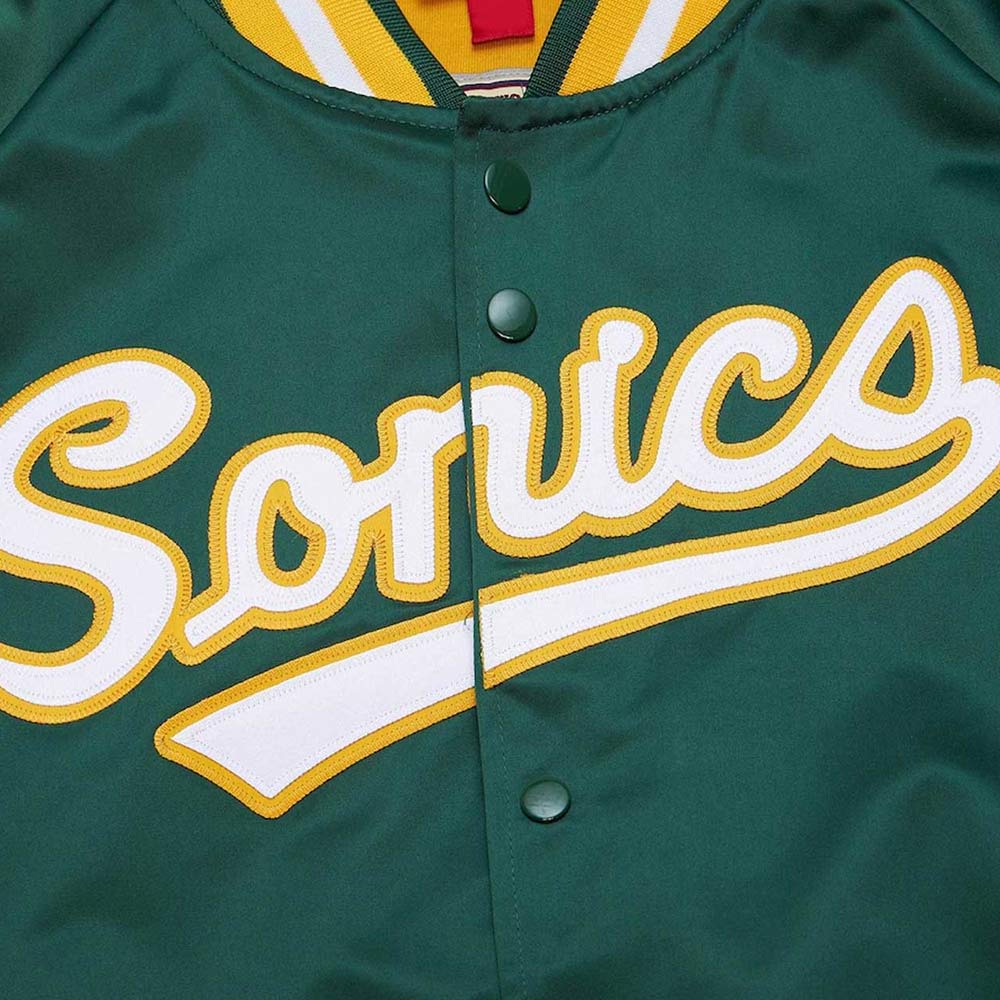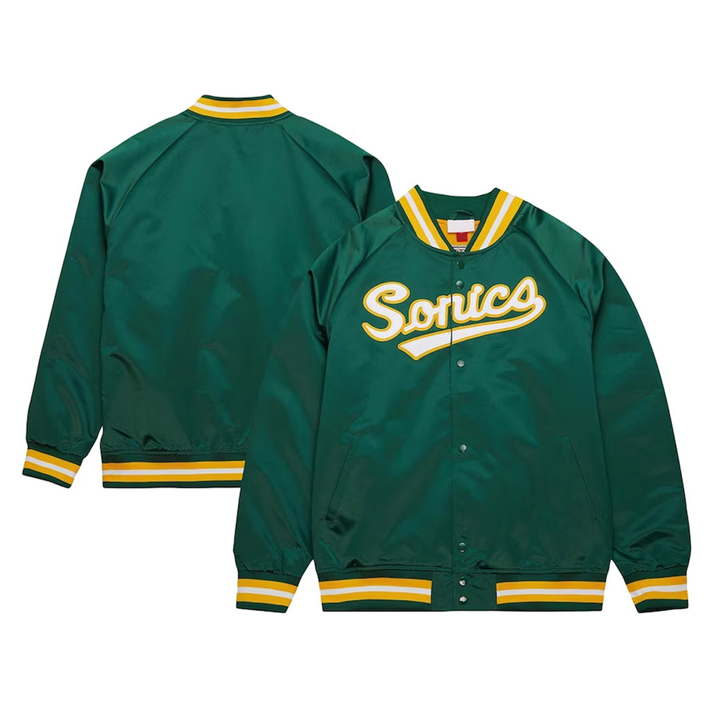 Unleash your inner style maven with our uniquely designed Seattle Supersonics Hardwood Classics Green Jacket, radiating an undeniable aura of urban chic. Crafted from lustrous satin material in a mesmerizing green hue, this jacket is the epitome of modern sophistication. Its sleek exterior is complemented by a smooth Viscose lining, promising a luxurious feel with every wear.