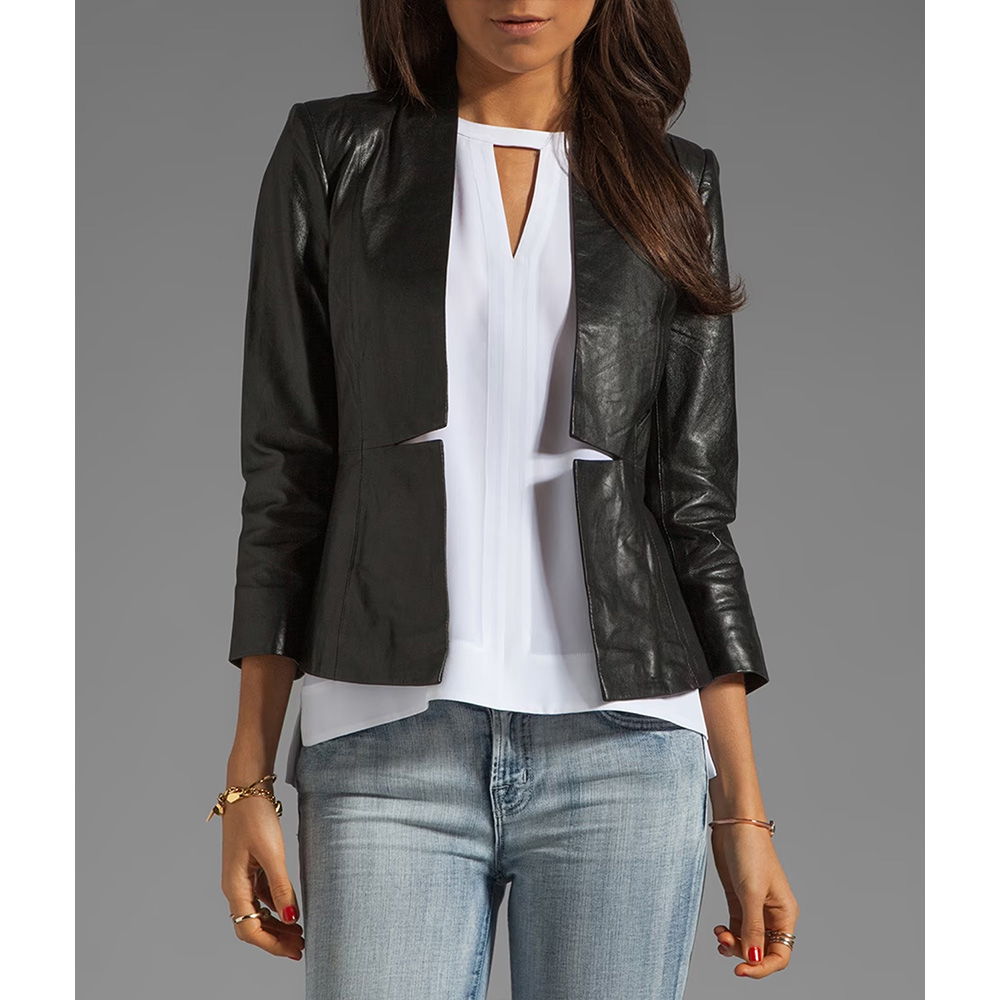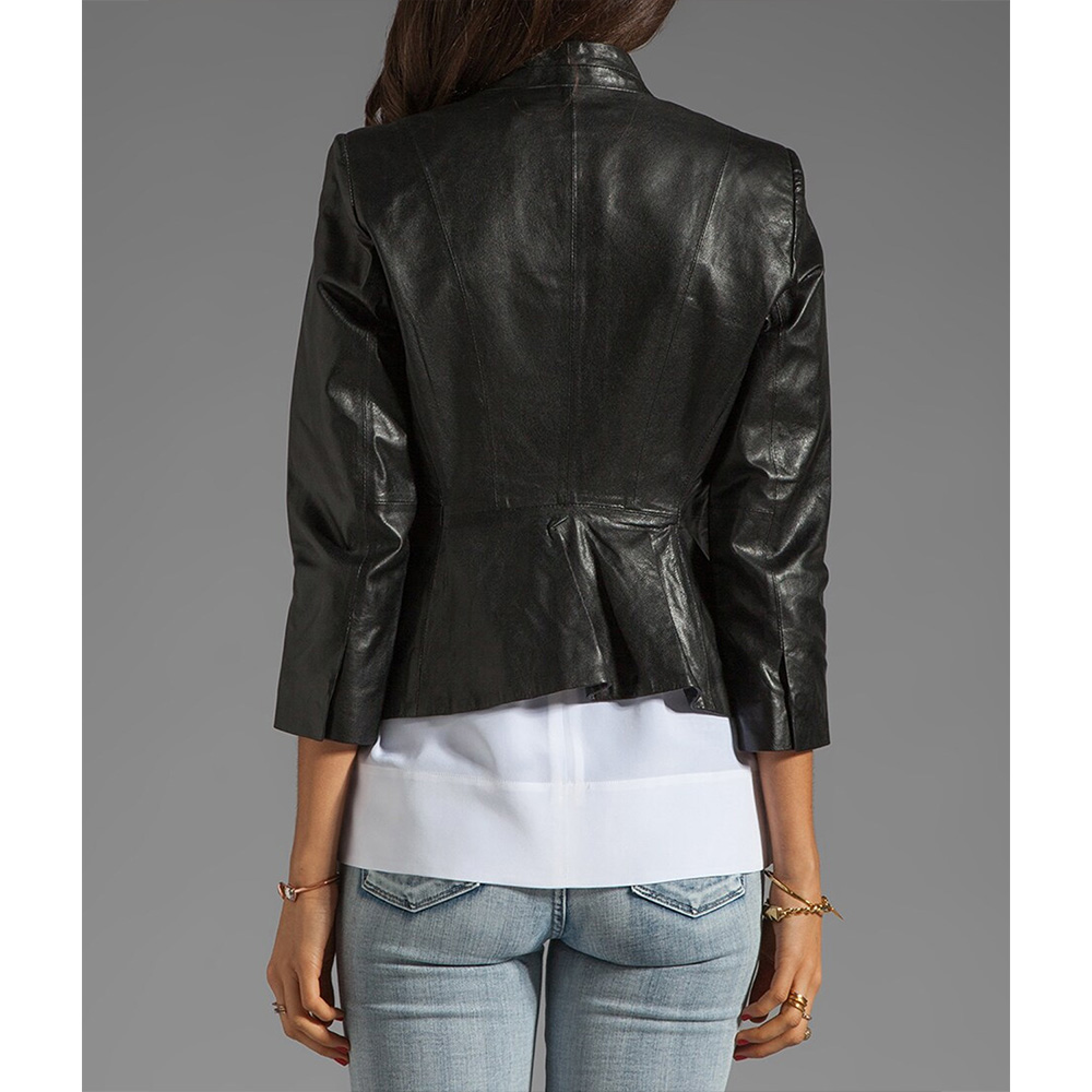 Introducing the Eliza Dooley Leather Jacket, as worn by Karen Gillan in Selfie Season 1. This genuine black leather jacket embodies both style and substance. With its round neck collar and branded YKK zipper front closure, it offers a classic yet contemporary design. The jacket features long sleeves with open hem cuffs and fine quality stitching, reflecting the craftsmanship behind this piece. Two side pockets add practicality without compromising on aesthetics. The soft viscose lining ensures day-long comfort. Whether you’re a fan of the series or simply seeking a statement piece to elevate your wardrobe, the Eliza Dooley Leather Jacket effortlessly combines fashion and functionality. Don’t miss the opportunity to make a bold fashion statement with this iconic Selfie Karen Gillan Leather Jacket inspired by Selfie.