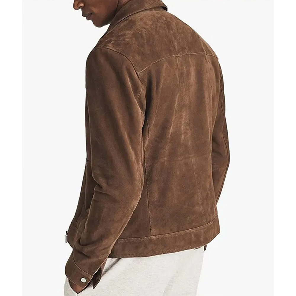 The Luxe Listings Sydney Simon Cohen jacket is made up of high-quality sueded leather. The jacket is available in a majestic brown color, which gives it an innovative and enchanted look. The jacket has shirt style collar. The jacket has branded YKK zipper front closure. A viscose lining of the jacket keeps you warm and relaxed. The sleeves of the Simon Cohen Luxe Listings Sydney jacket are long with open hem cuffs. The jacket has two inner and two side pockets. The fine quality stitching of Luxe Listings Sydney Simon Cohen jacket makes it durable and desirable to wear. The jacket is an ideal choice to wear in parties.