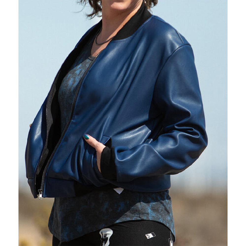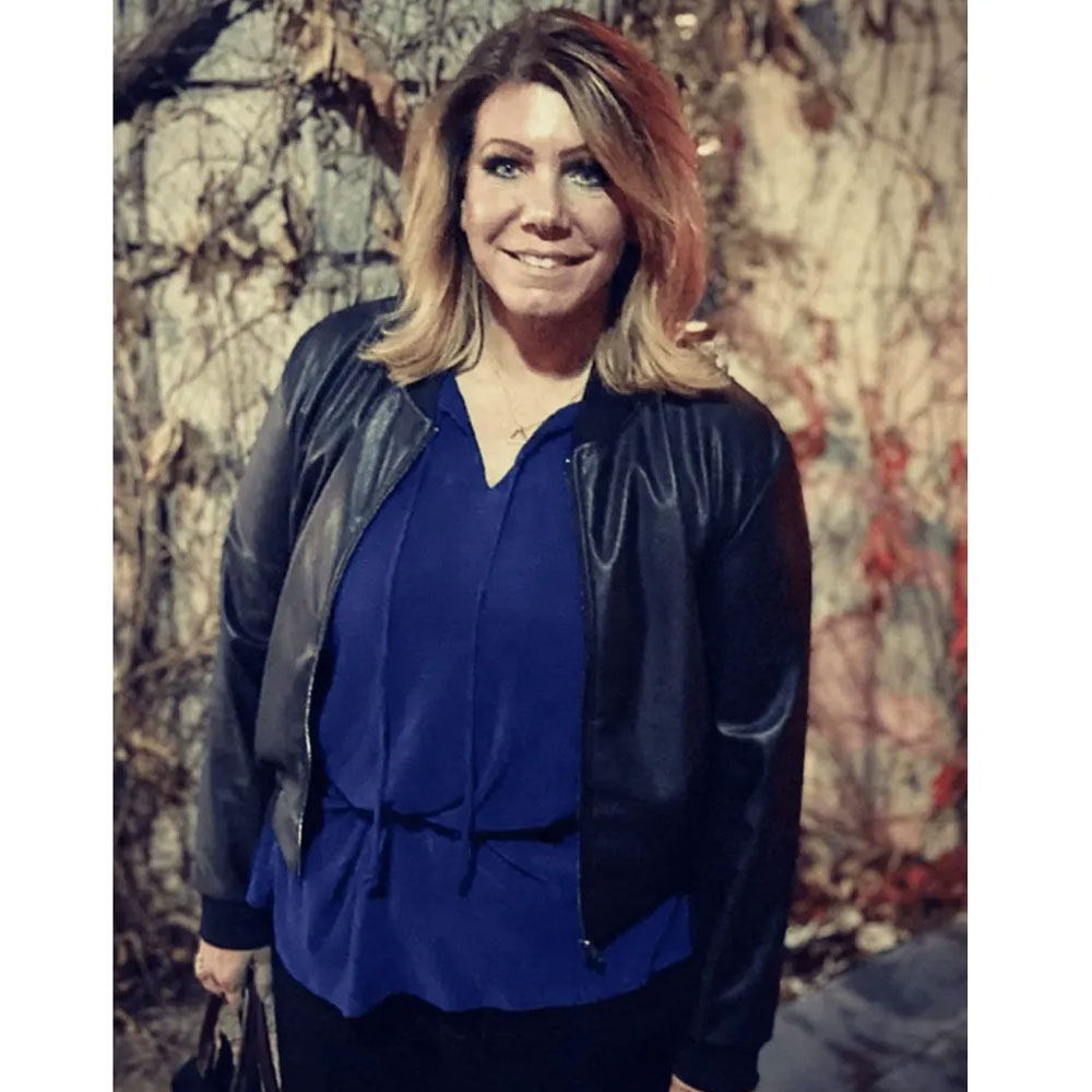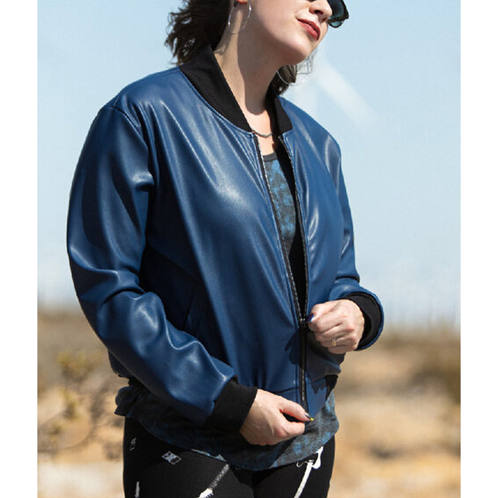 Sister Wives S17 Meri Brown Bomber Blue Leather Jacket