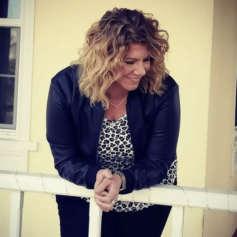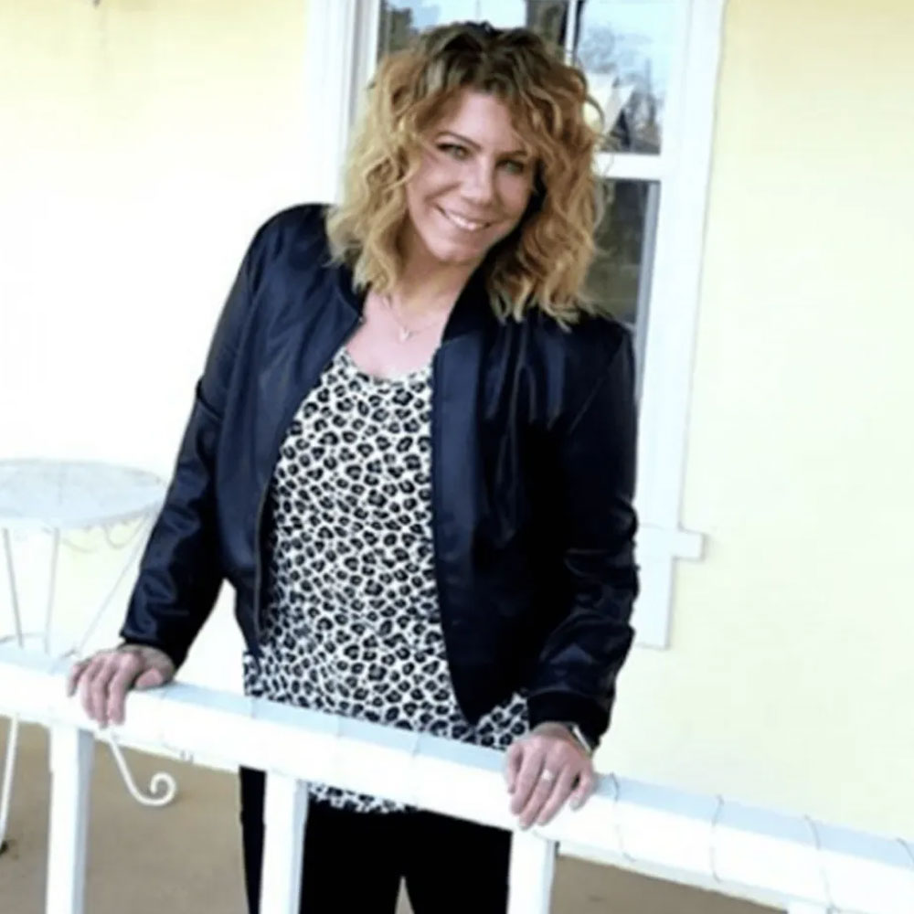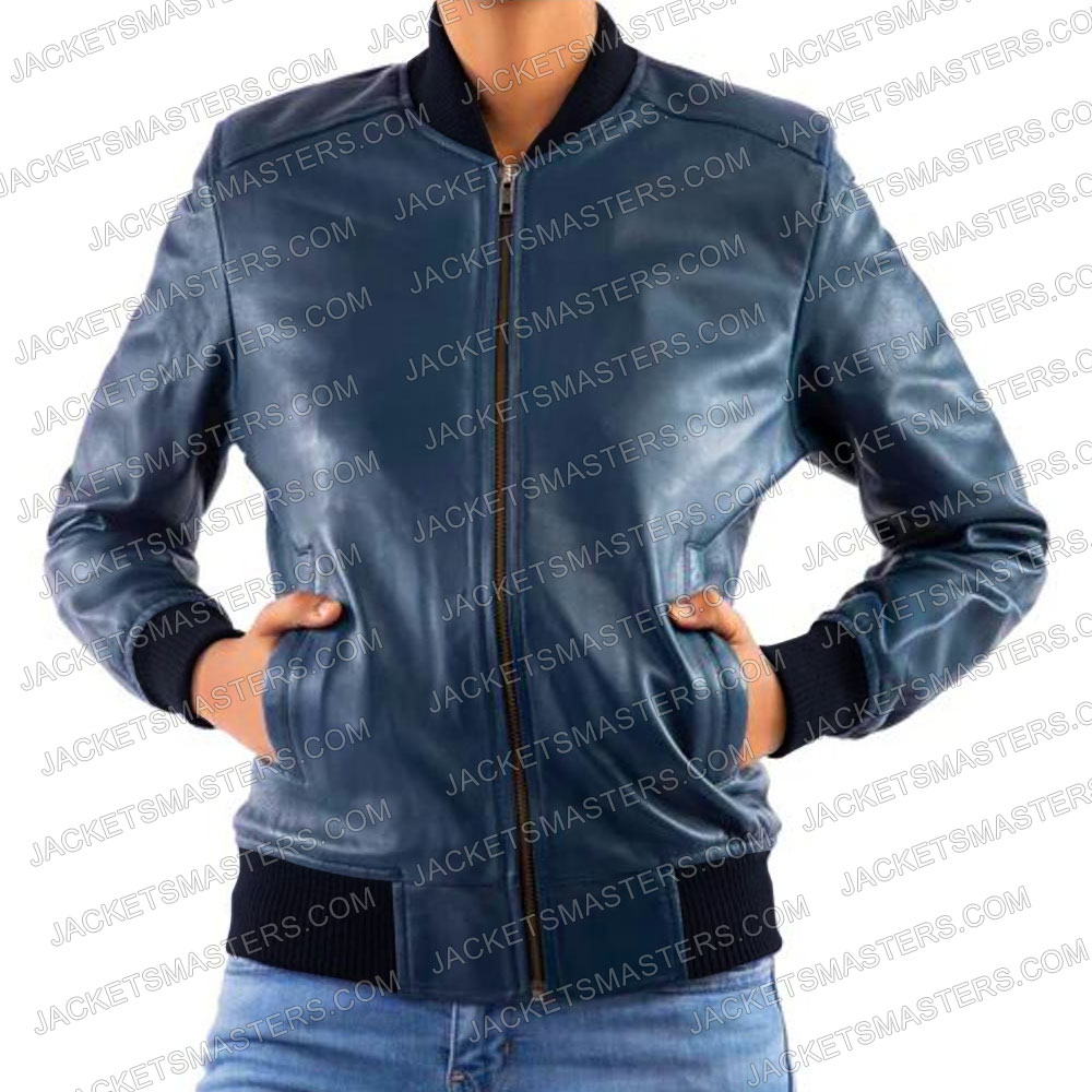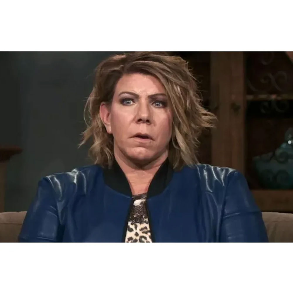 Sister Wives S17 Meri Brown Bomber Blue Leather Jacket