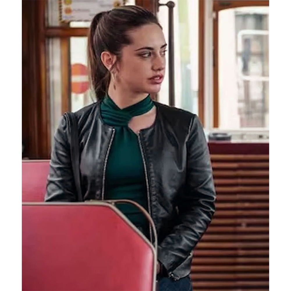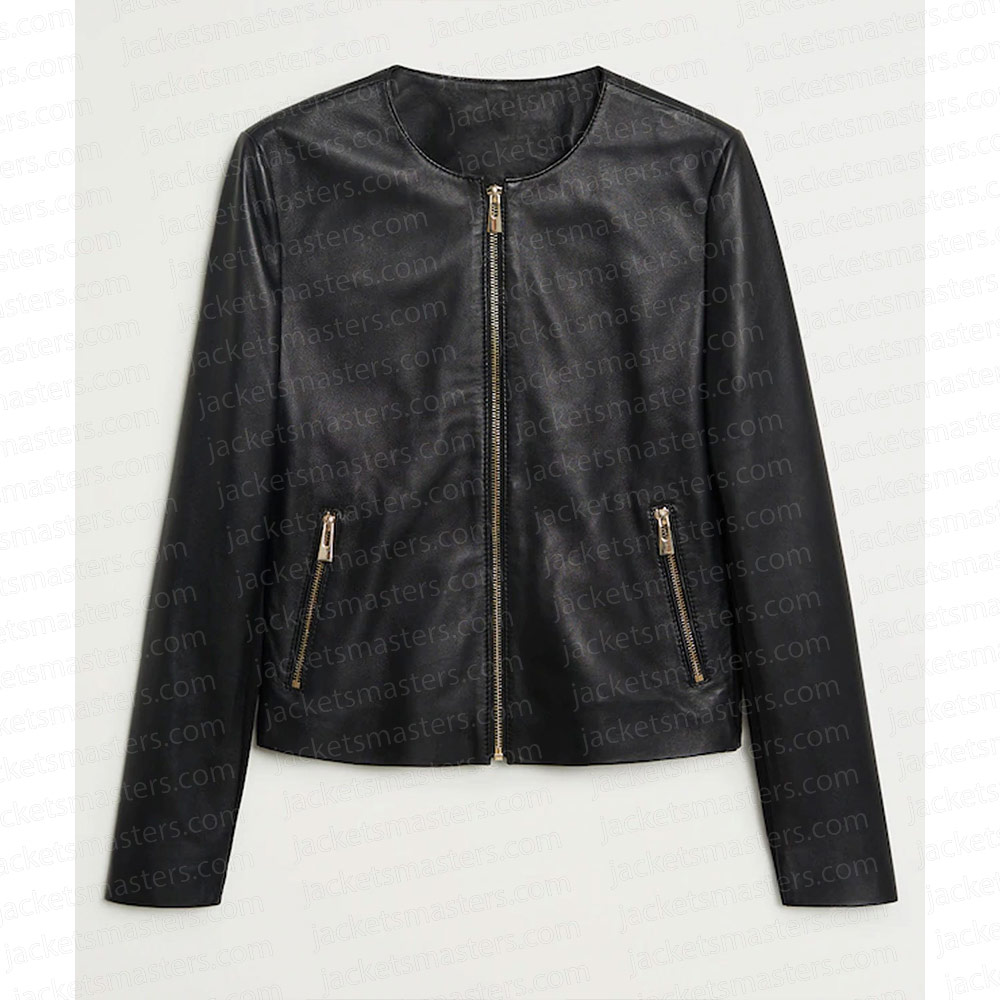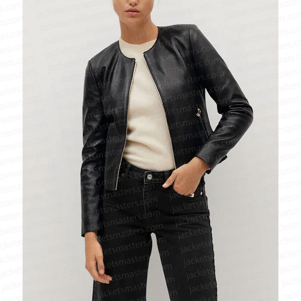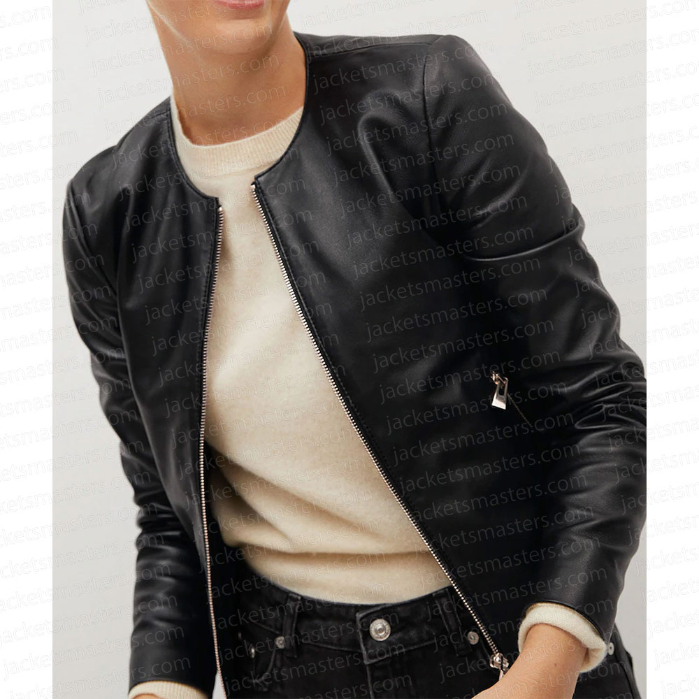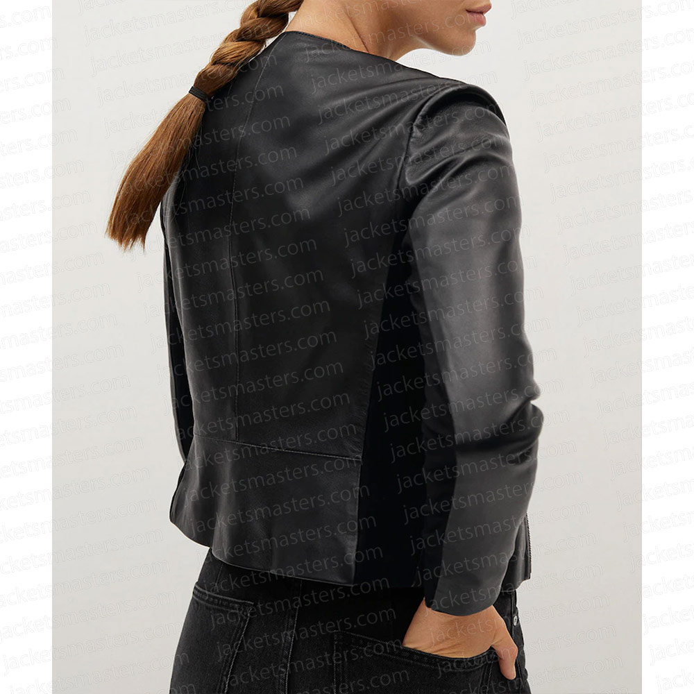 Asia Ortega Sky High Sole Collarless Black Leather Jacket