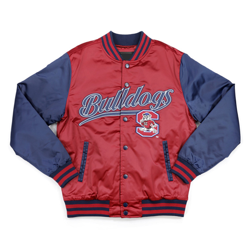This South Carolina State baseball jacket can be worn by both male and female fans throughout the game season. The navy and garnet color combination represents true Bulldogs pride so students should add it to their collection.