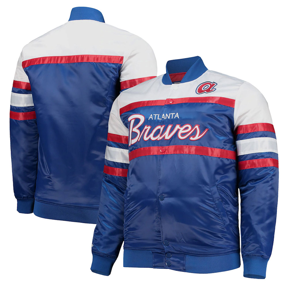 Blue/White Atlanta Braves Special Script Coaches Full-Snap Satin Jacket