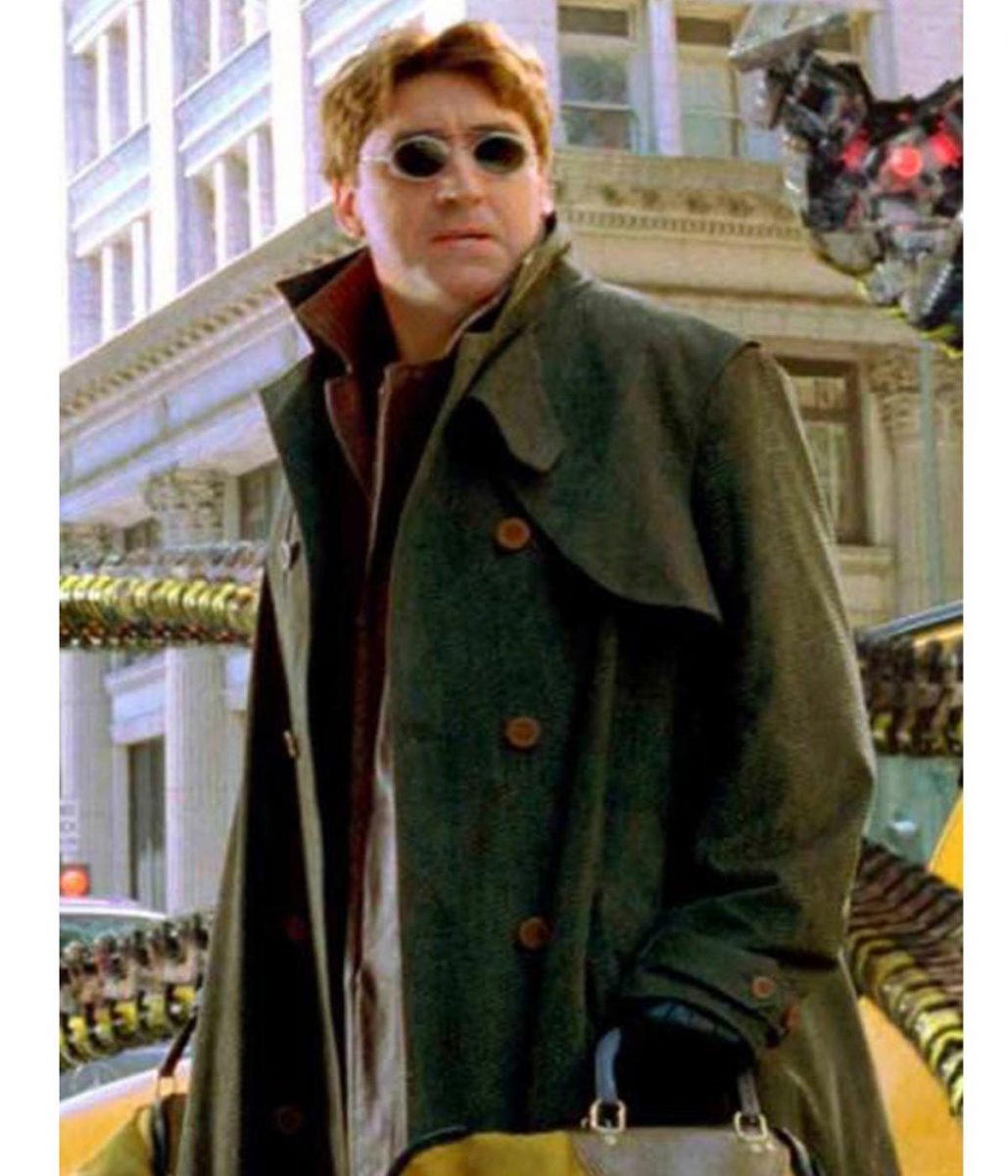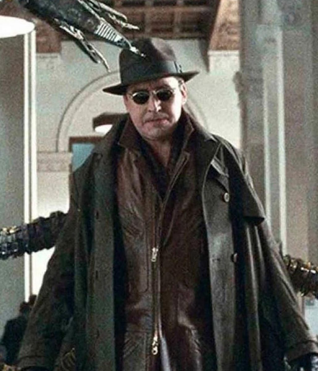 The Spider-Man No Way Home Otto Octavius coat is made from high-quality genuine leather. The coat is available in a majestic brown color which gives it an innovative and enchanted look. The collar of the coat is stand style. It has a classic buttoned front closure. A soft viscose inner lining of the coat keeps you warm and relaxed. The sleeves of the Doctor Octopus coat are full-length ends with belted cuffs. The coat has two outside pockets and two inside pockets for keeping stuff. The fine quality stitching of the Spider-Man No Way Home Otto Octavius coat makes it durable and comfortable to wear. The coat is an ideal choice for Halloween parties.