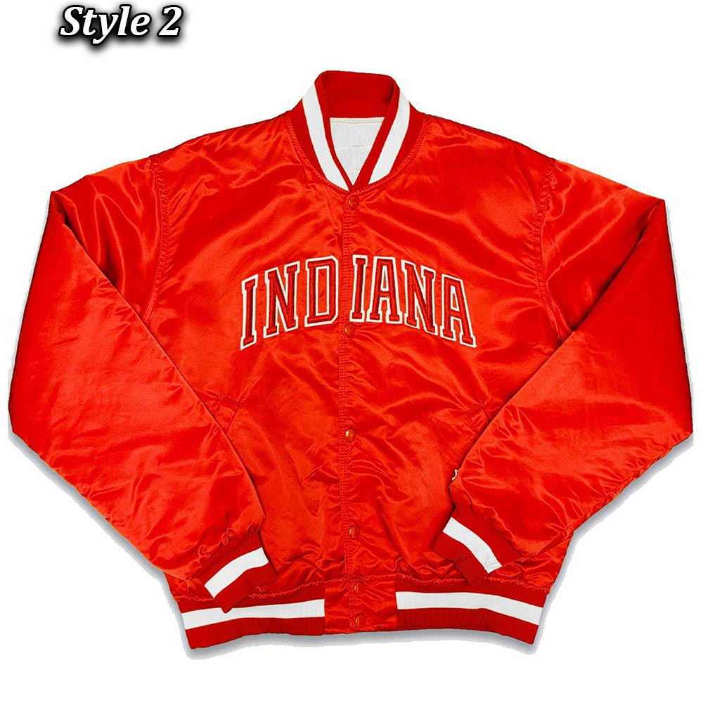 The Indiana Hoosiers jacket is made from high-quality satin. The jacket is available in a glorious red color which gives it an innovative and attractive look. The collar of the jacket is a rib-knitted style. It has a classic snap tab buttoned front closure. A soft viscose inner lining of the jacket keeps you warm and relaxed. The sleeves of the Starter Indiana Hoosiers 80s bomber jacket are long ends with rib-knitted cuffs. The jacket has two side waist pockets for keeping stuff. The fine quality stitching of the Indiana Hoosiers jacket makes it durable and desirable to wear. The jacket is an ideal choice for stylish men and women.