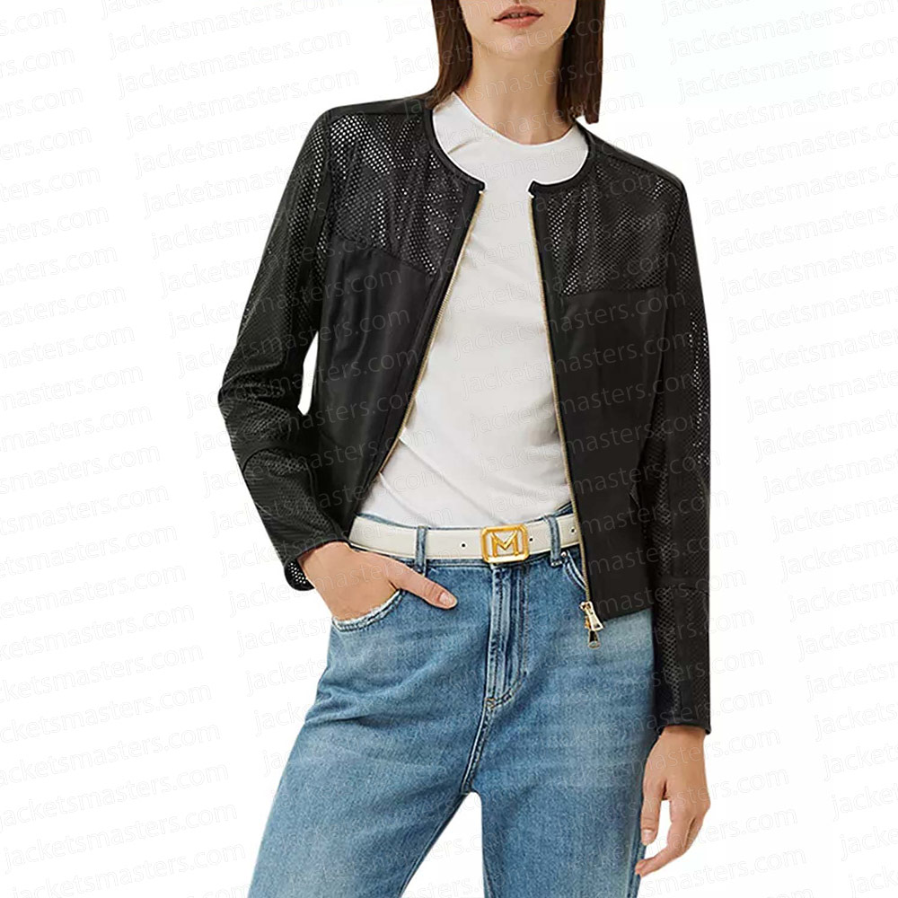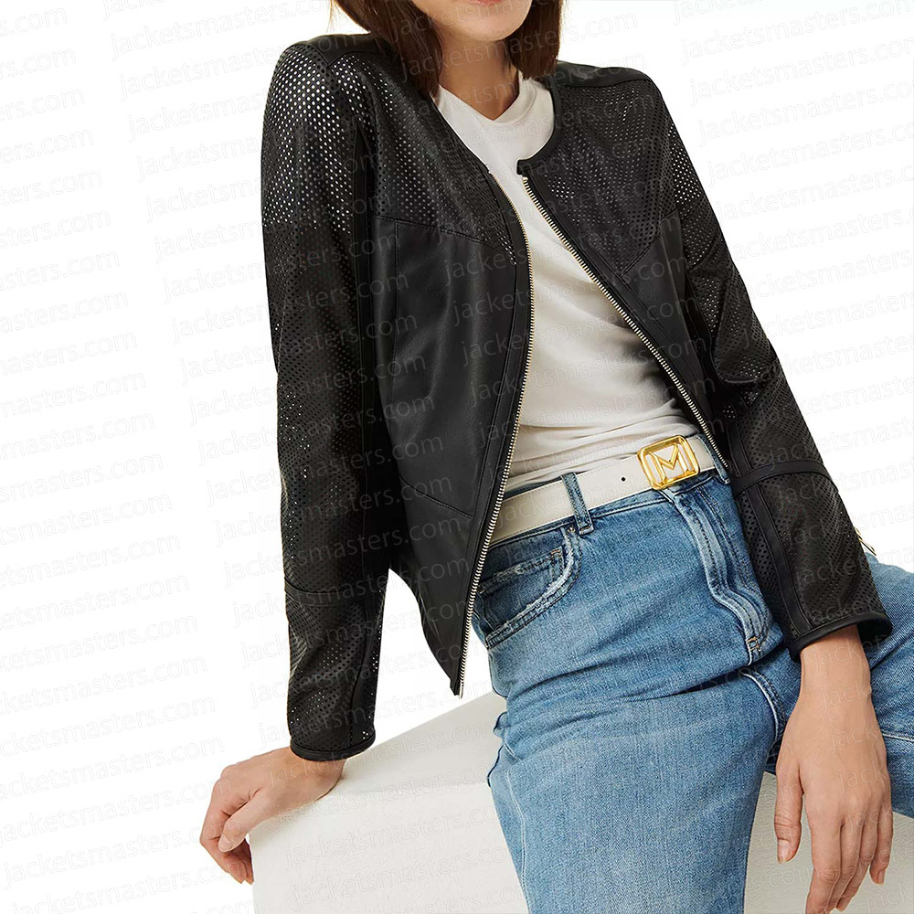 Good Morning America Stephanie Ramos Black Leather Collarless Jacket