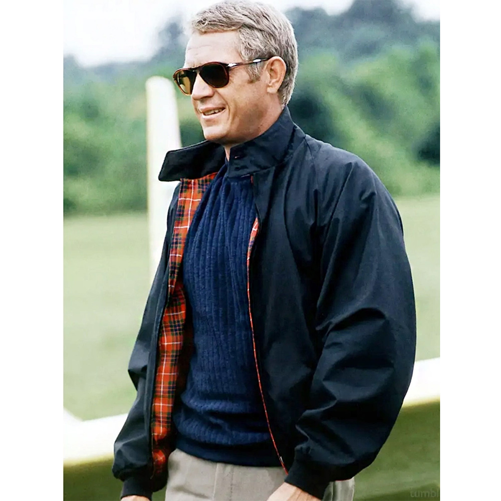 For functionality, the jacket includes two flap waist pockets and an inner pocket to carry essentials. This makes the Steve McQueen Harrington Jacket not only fashionable but also practical. Fans of bomber jackets will appreciate its sporty influence, while admirers of Harrington coats will see its heritage-inspired elegance.