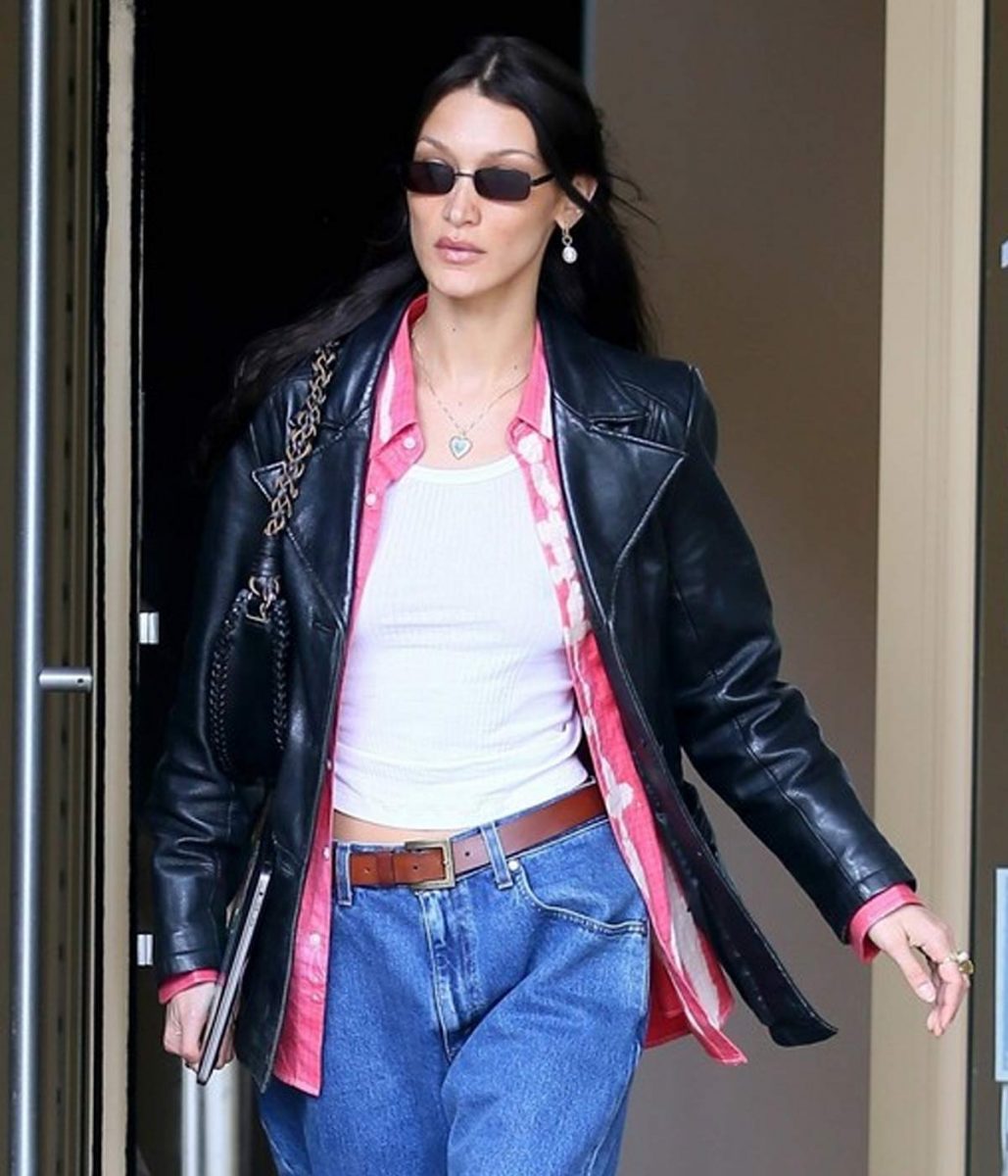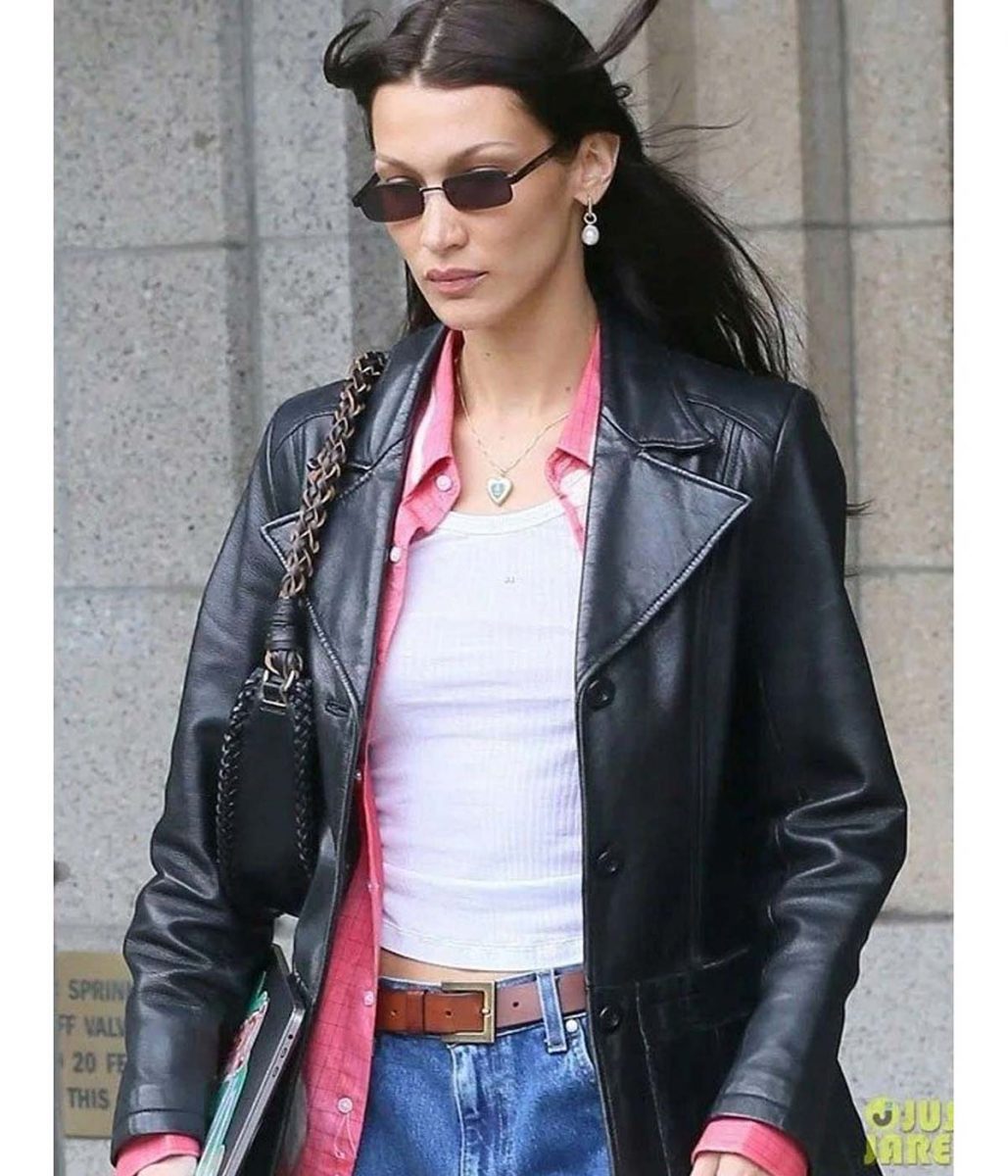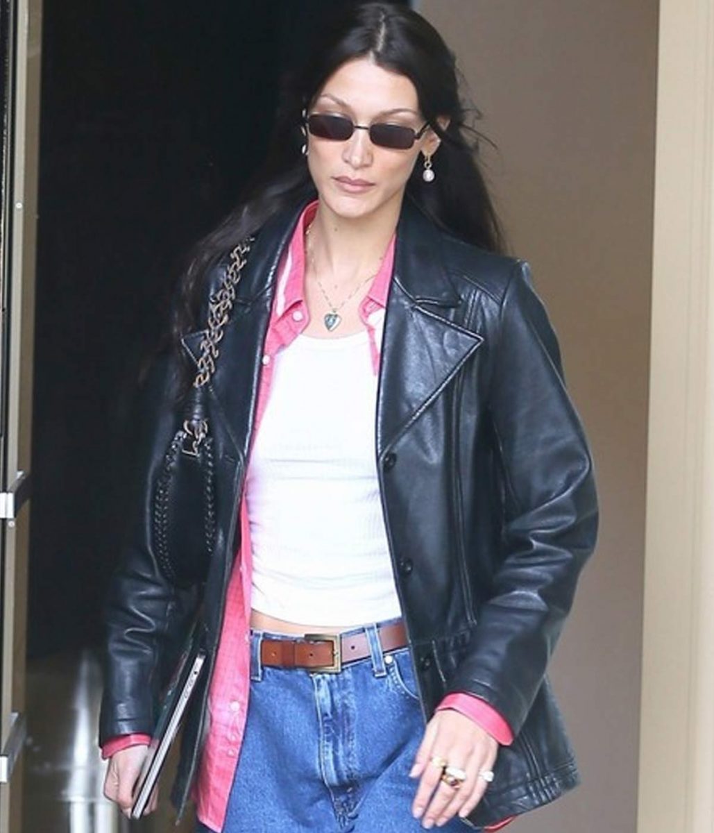 The Meeting In NYC Bella Hadid leather jacket body is made from high-quality Genuine leather. The jacket is available in a black color, helping you give your wardrobe a modern and chic style. The lapel style collar with a classical buttoned style front closure adds charm to your jacket. A soft viscose inner lining of the jacket keeps you warm and relaxed during harsh winter. The sleeves of the Bella Hadid Meeting In NYC Leather jacket are freely fitting with open hem cuffs, increasing the shirt’s glory. The jacket has two outer and two inner pockets for saving money and keeping hands warm. The top-quality stitching of the Meeting In NYC Bella Hadid leather jacket makes it comfier and more lovable to wear. The jacket must be the first choice of fashion lovers.