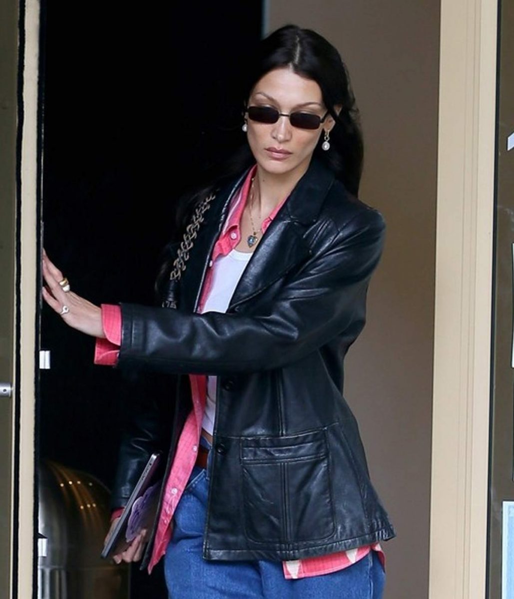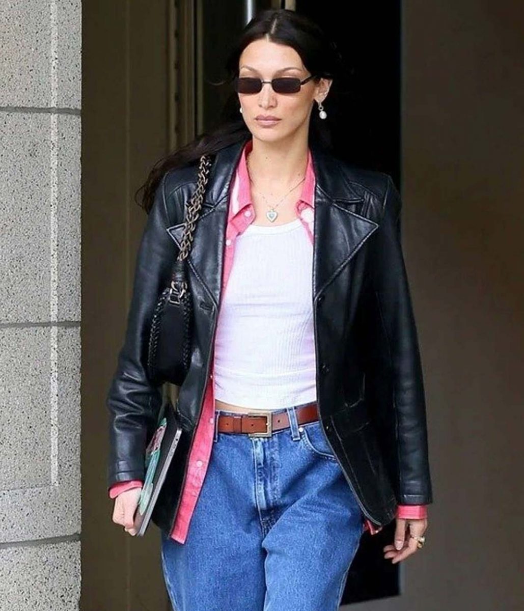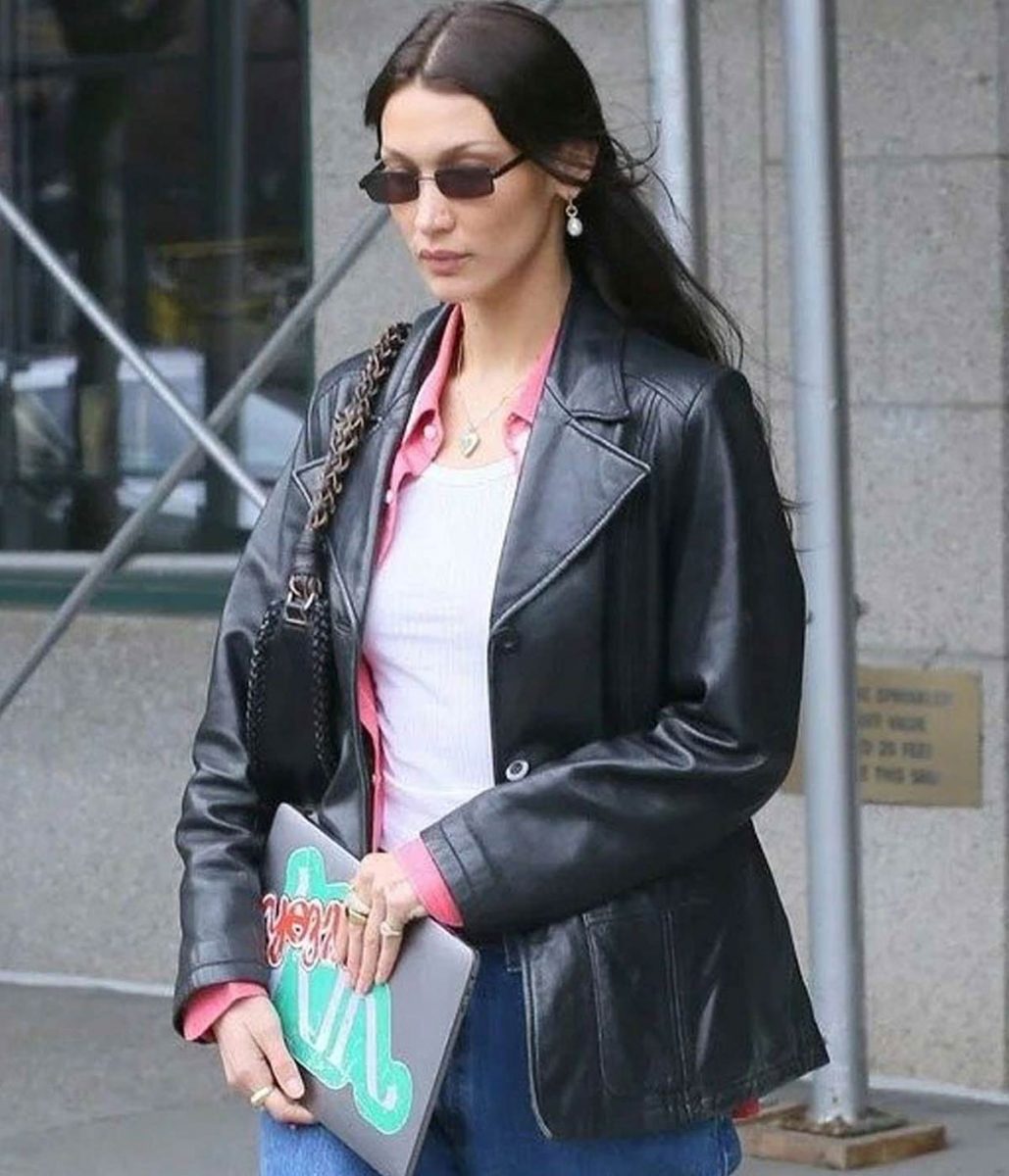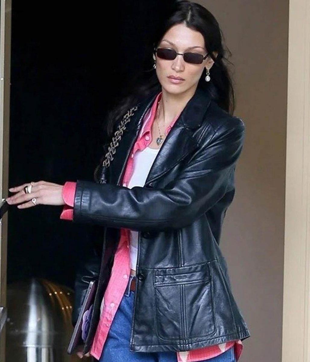 The Meeting In NYC Bella Hadid leather jacket body is made from high-quality Genuine leather. The jacket is available in a black color, helping you give your wardrobe a modern and chic style. The lapel style collar with a classical buttoned style front closure adds charm to your jacket. A soft viscose inner lining of the jacket keeps you warm and relaxed during harsh winter. The sleeves of the Bella Hadid Meeting In NYC Leather jacket are freely fitting with open hem cuffs, increasing the shirt’s glory. The jacket has two outer and two inner pockets for saving money and keeping hands warm. The top-quality stitching of the Meeting In NYC Bella Hadid leather jacket makes it comfier and more lovable to wear. The jacket must be the first choice of fashion lovers.