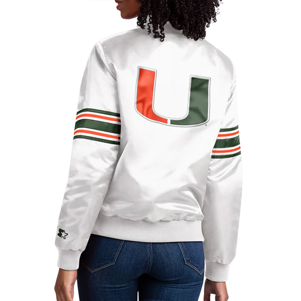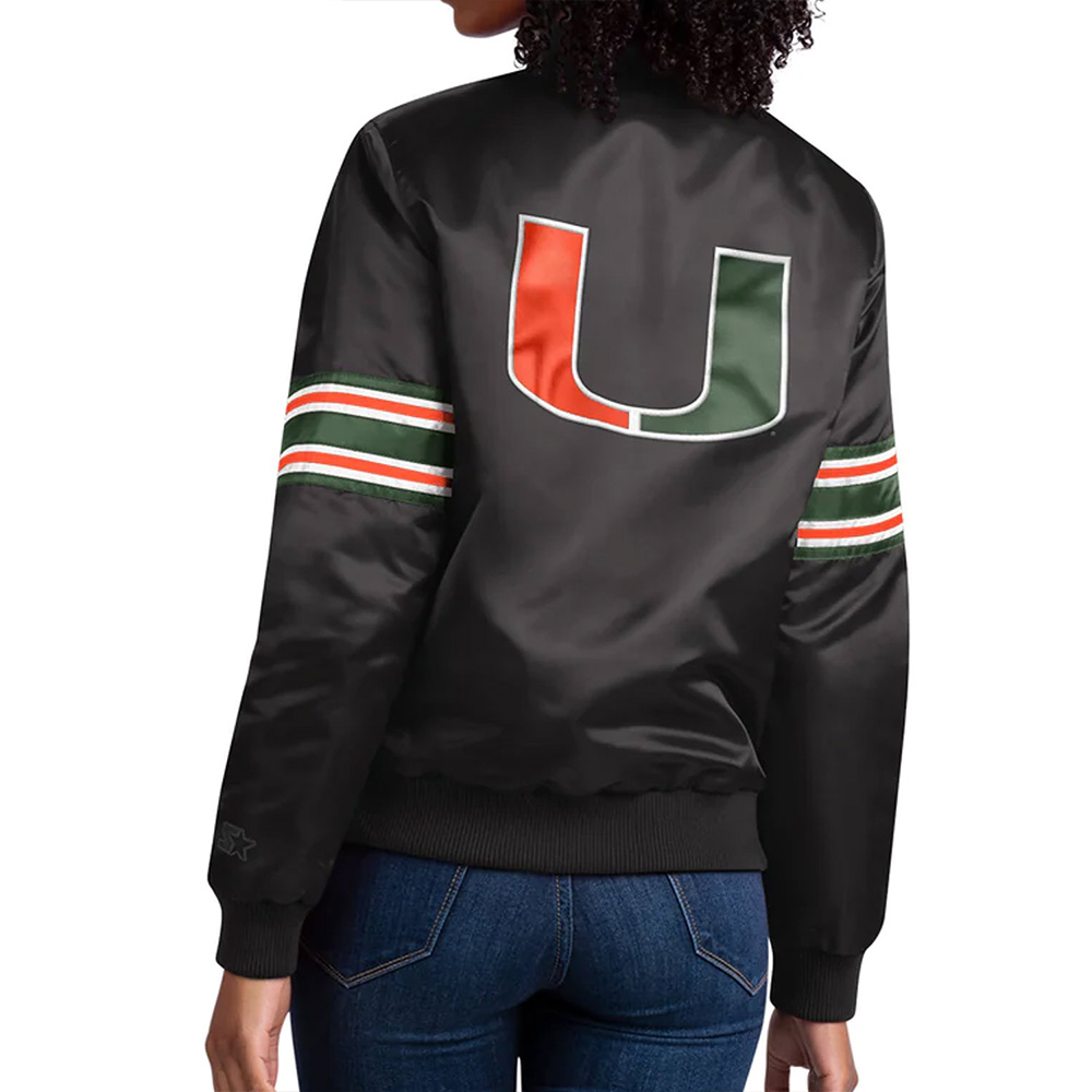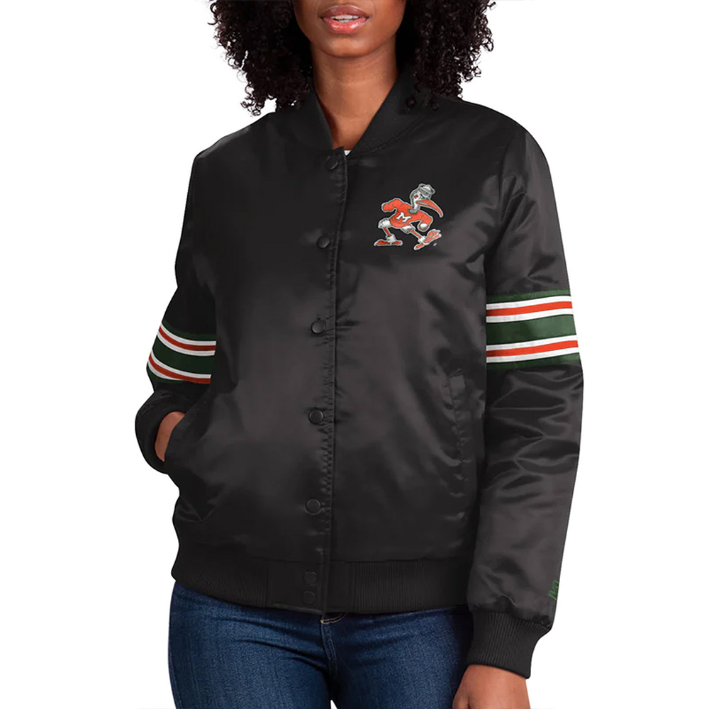 Black/White Starter Miami Hurricanes Striped Satin Full-Snap Jacket