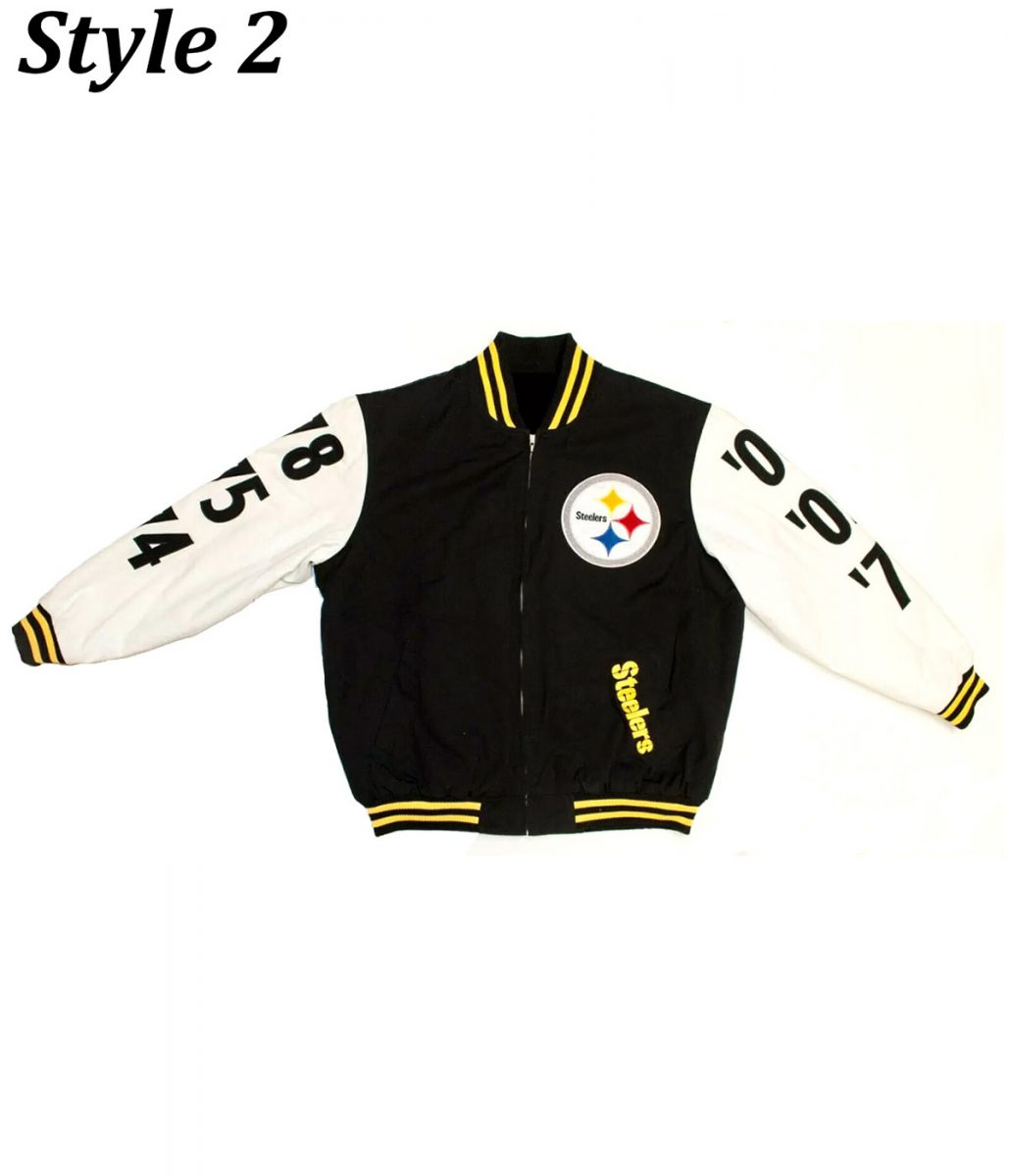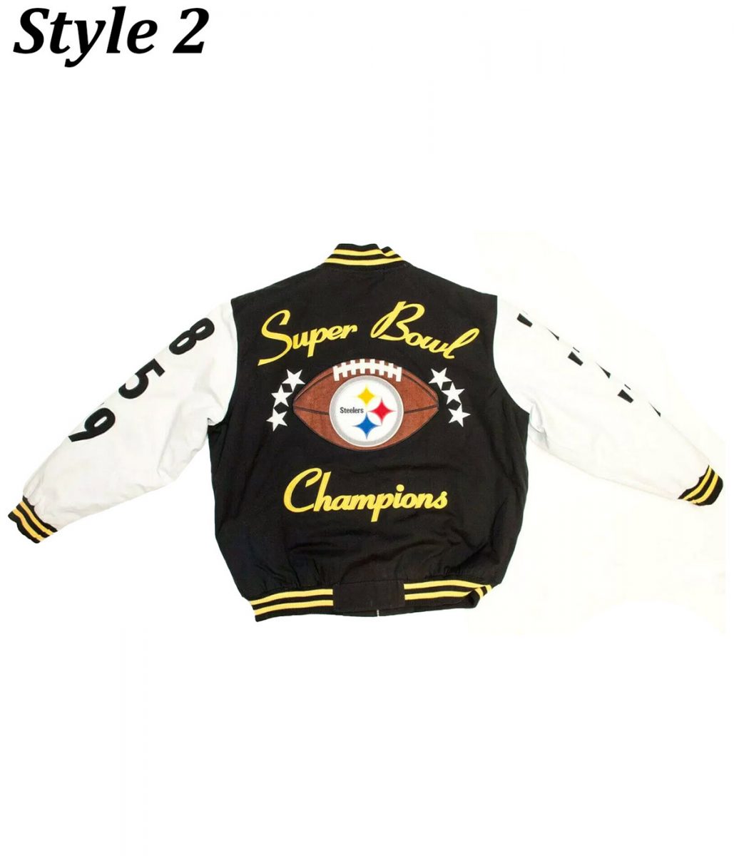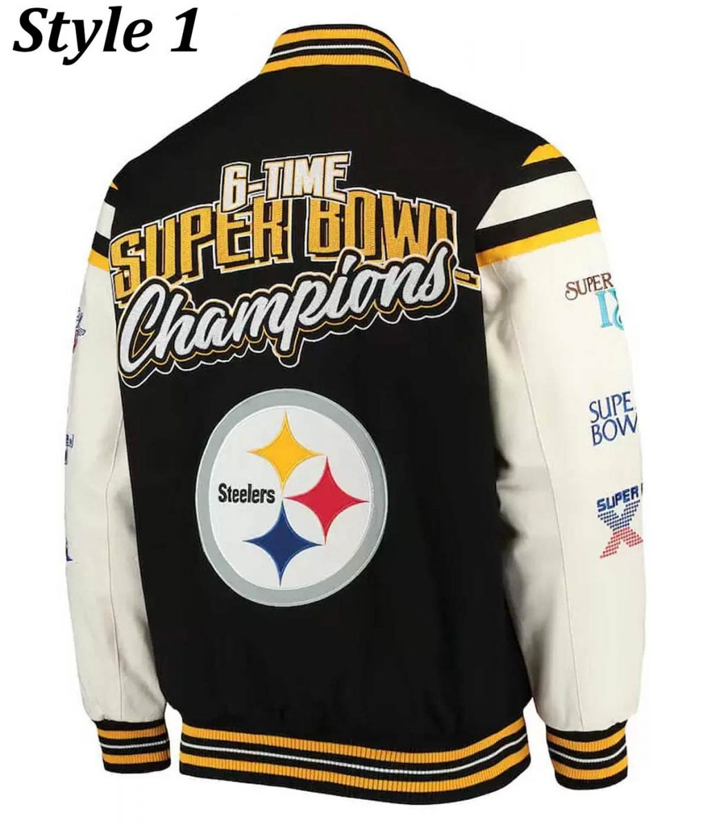 NFL Varsity Pittsburgh Steelers Super Bowl Champions Black and White Jacket