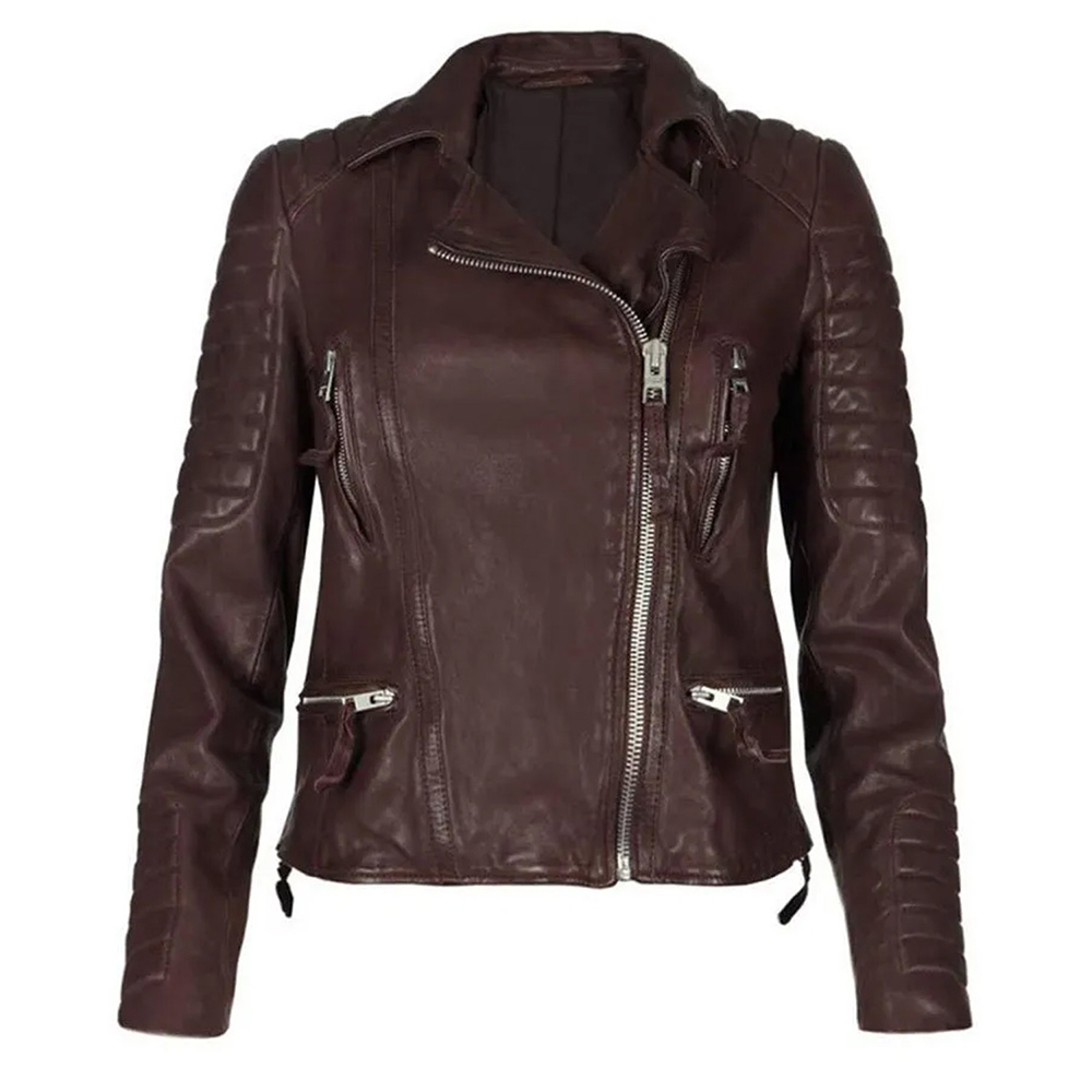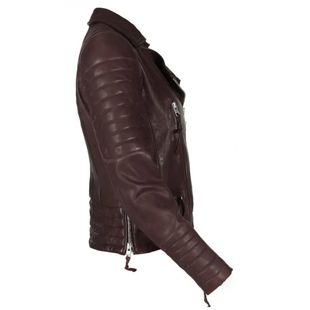 Introducing the ethereal Bay Kennish Brown Leather jacket, a celestial masterpiece meticulously handcrafted with premium genuine leather. Transcending traditional Brown , its iridescent hues reflect a captivating cosmic aura. Embrace the daring spirit of Switched at Birth Season 5 Vanessa Marano Maroon Leather jacket with a dynamic peak lapel style collar and innovative asymmetrical zipper front closure, fusing a unique style and functionality seamlessly. A luxuriously soft silk lining enhances comfort and allure. The Bay Kennish Brown Leather jacket celestial-inspired embroidery on the sleeves and back add an enchanting touch, while the rib knitted hemline guarantees a customized fit. With two outside zipper pockets and reversible design, this exclusive piece ensures both practicality and uniqueness, making you the star of any event with an alluring style that’s out of this world.