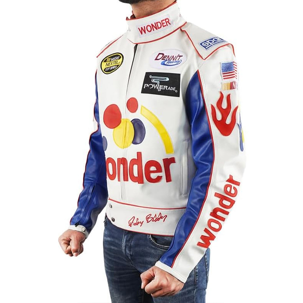 Step into the thrilling world of speed and retro racing fashion with the Wonderbread Jacket, famously inspired by Will Ferrell’s unforgettable role as Ricky Bobby in Talladega Nights: The Ballad of Ricky Bobby. Designed to capture the boldness of the racing track, this jacket is not just apparel—it’s a statement of adventure, nostalgia, and fearless energy.