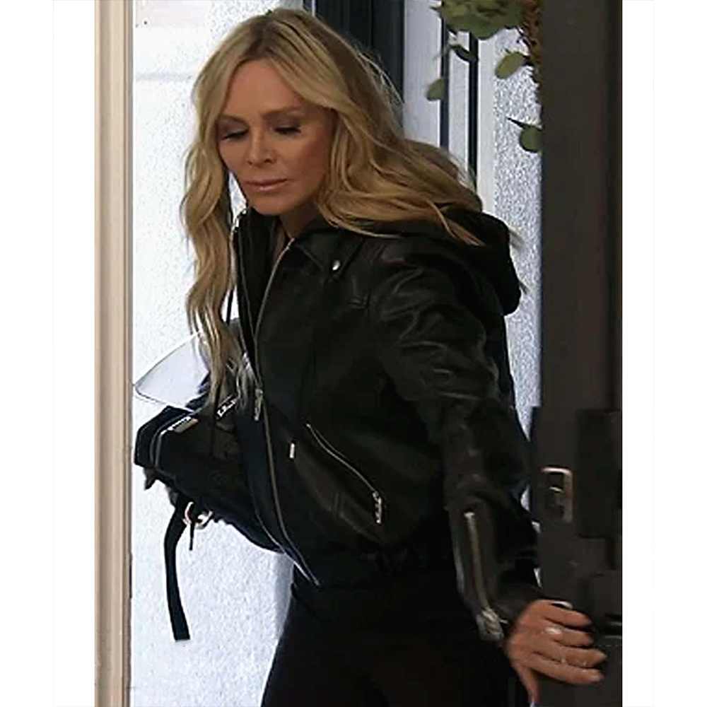 Unlock the gateway to sartorial excellence with the Real Housewives of Orange County Tamra Judge Leather jacket, a transcendent fusion of artistry and fashion-forward design crafted from premium quality genuine leather. Its mesmerizing black color serves as a canvas, on which the wearer becomes a living embodiment of a modern masterpiece. This Tamra Judge the Real Housewives of Orange County Leather jacket defies convention with its revolutionary removable hooded collar, a sculptural marvel inspired by the fluidity of contemporary architecture. The branded YKK zipper front closure becomes a transformative symbol, bridging the realms of fashion and self-discovery. With its soft viscose inner lining, the Real Housewives of Orange County Tamra Judge Leather jacket, becomes a sanctuary, cocooning you in comfort and serenity. Step into a world where style becomes an extension of your being, where boundaries dissolve and the extraordinary becomes your reality
