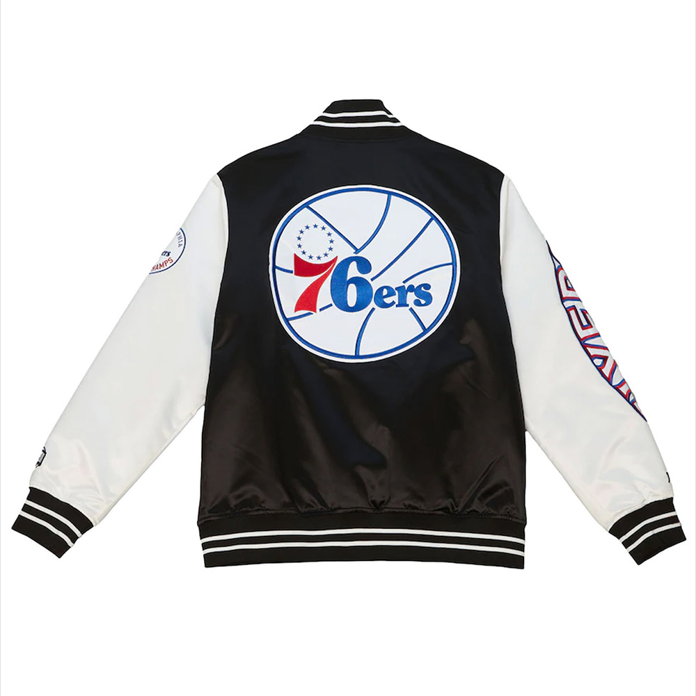 Step into the spotlight with the Philadelphia 76ers Team Origins jacket, meticulously crafted from premium satin fabric. Its mesmerizing black and white color combination exudes innovation and modernity, making a bold and unforgettable statement. Featuring a timeless shirt-style collar and a branded YKK zipper front closure, this jacket combines style and functionality seamlessly. The soft viscose inner lining envelops you in warmth and relaxation, while the long sleeves with rib-knitted cuffs provide a comfortable and sophisticated fit. With two inner and two side pockets, this Philadelphia 76ers Team Origins jacket offers practicality and storage. The meticulous stitching ensures a comfortable and desirable wearing experience, making it an ideal choice for parties and gatherings.