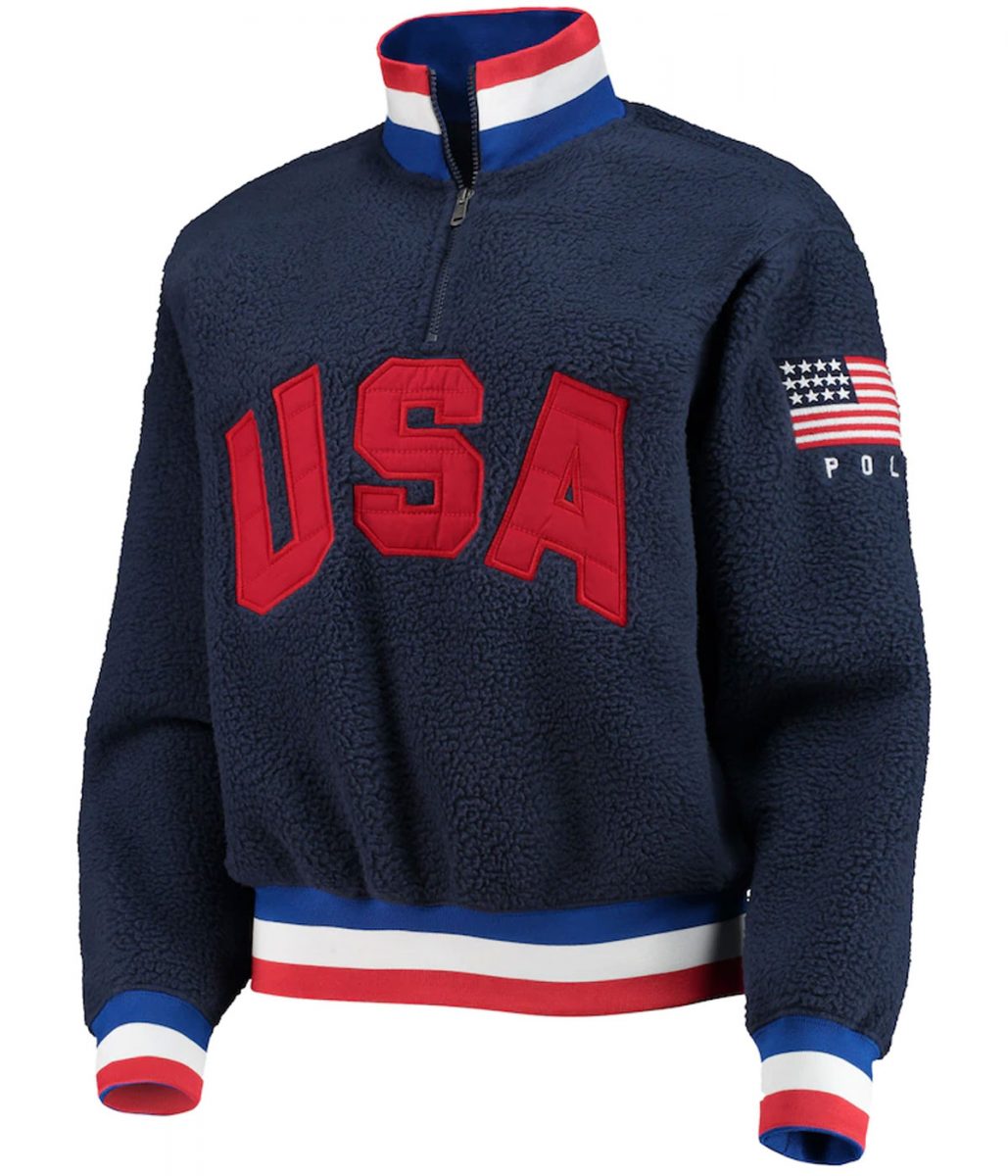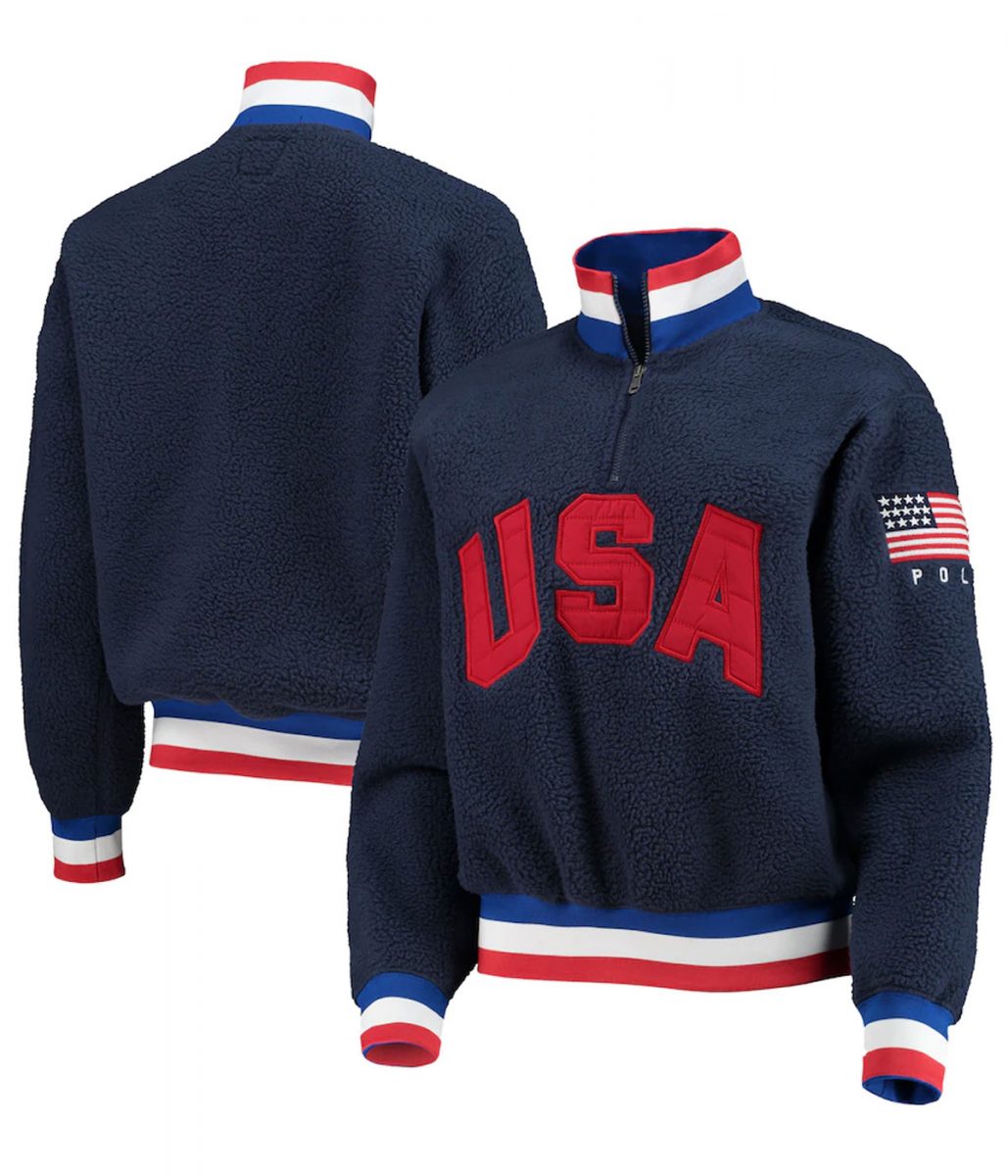 Team USA Villagewear Vintage Sherpa Polar Quarter-Zip Navy Blue Jacket