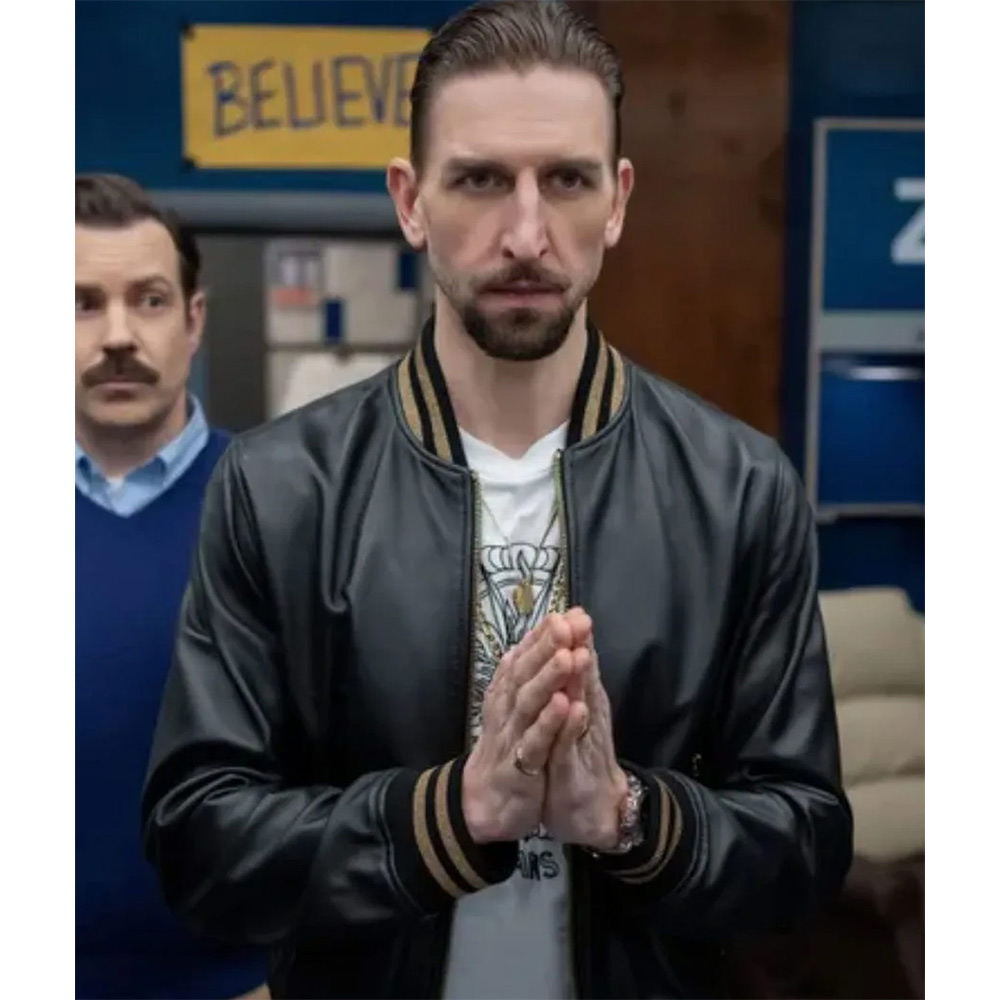 Maximilian Osinski Ted Lasso S03 Zava Black Varsity Leather Jacket