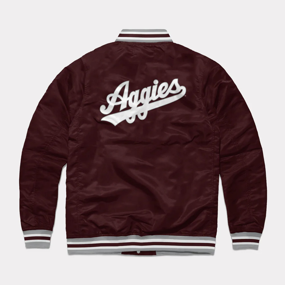 The Texas A&M Aggies logo is boldly positioned on the front as the chest and the “Aggies” lettering on the back cannot be misconstrued. The stitching of Texas A&M Aggies Wine Jacket is superb and not only increase its longevity but also displays the quality workmanship done on every single product.