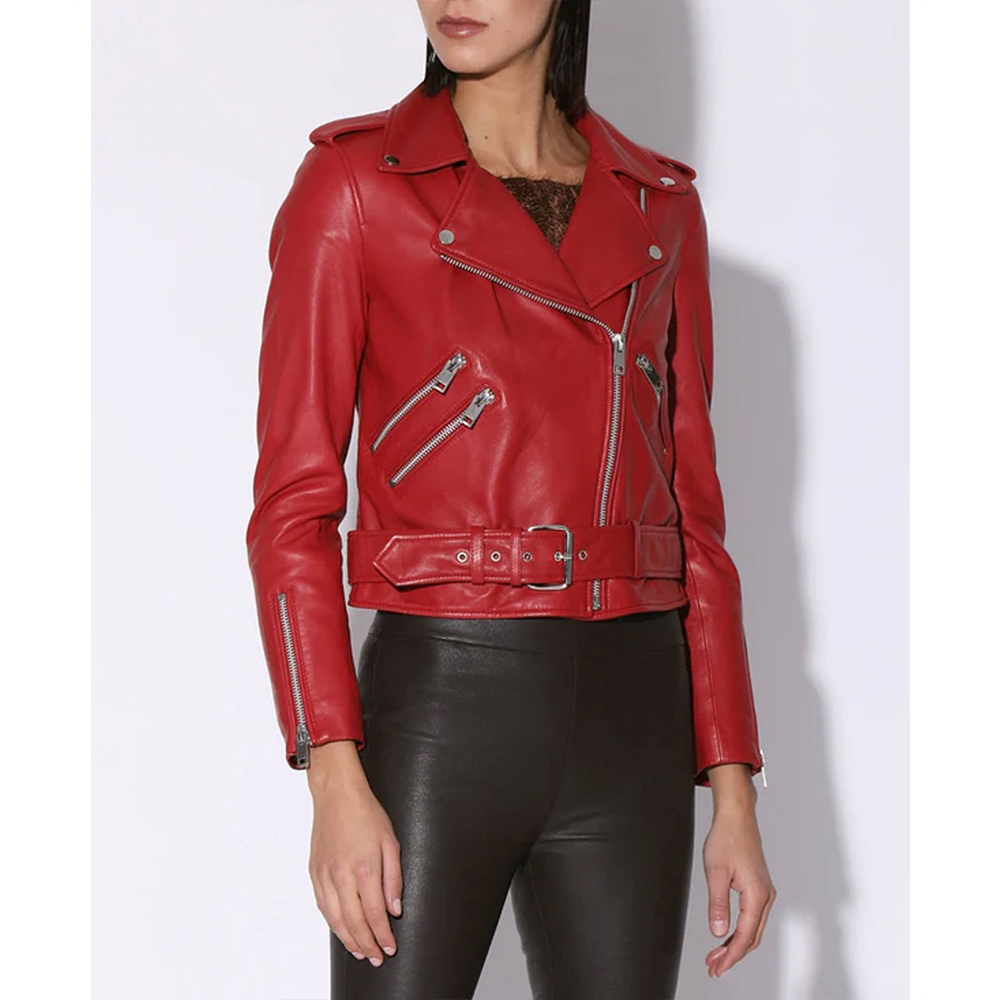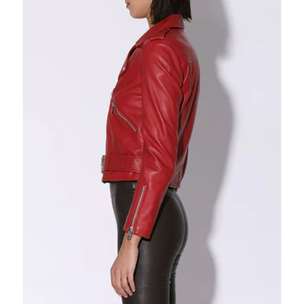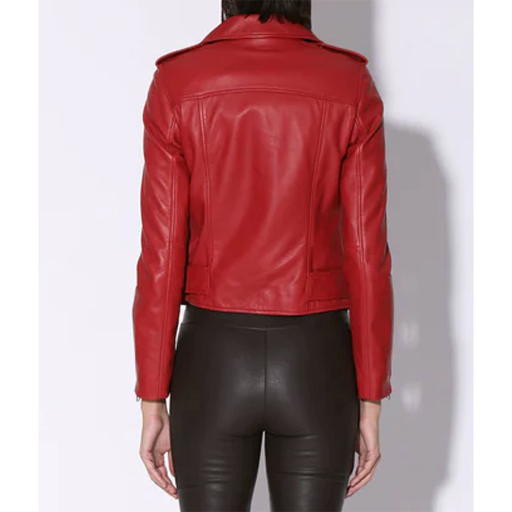 Introducing the Zoe Leather Jacket, a breathtaking piece inspired by Gemma Chan’s role in ‘The Afterparty.’ Crafted from genuine red leather, this jacket boasts a front zipper closure and a timeless lapel collar for a touch of enduring sophistication. The exquisite fine stitching highlights the vivid hue, while the zipper cuffs lend an edgy edge to the long sleeves. Featuring three external zipper pockets, this jacket seamlessly melds style with practicality. The viscose lining of the Afterparty Gemma Chan Red Leather Jacket ensures comfort, rendering it a versatile choice for making a bold statement on any occasion. Elevate your wardrobe with the Zoe Leather Jacket, where boldness meets beauty.