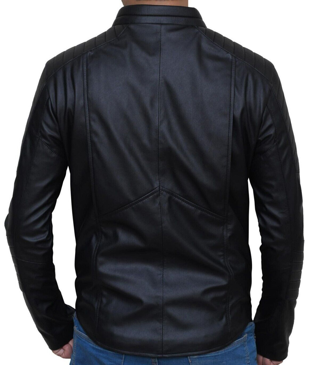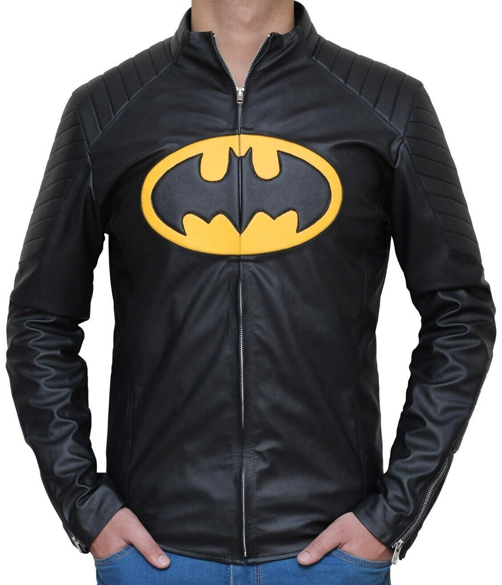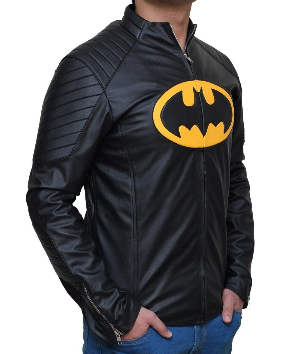Batman Lego Yellow Logo Black Leather Padded Jacket