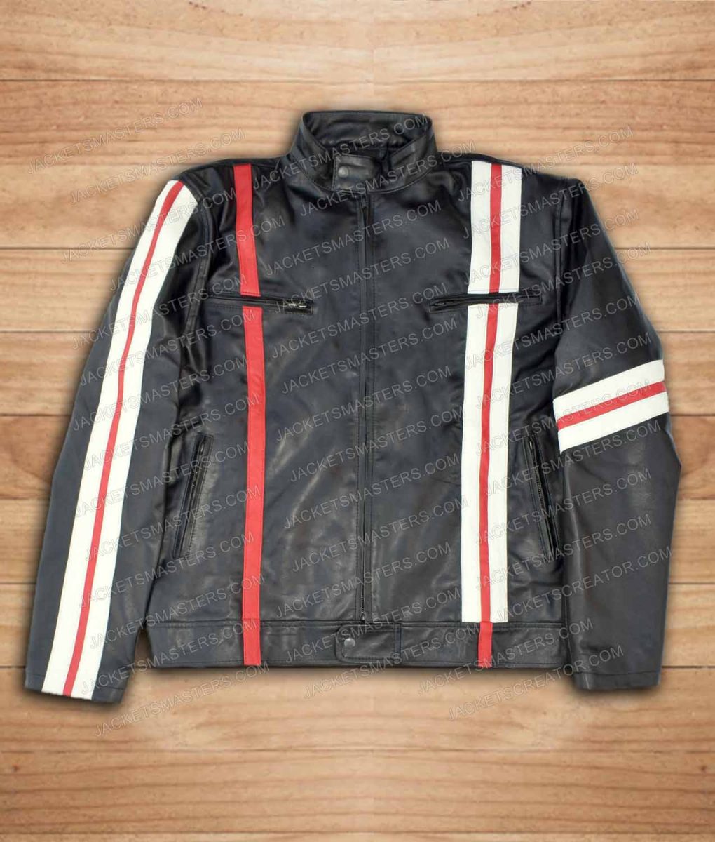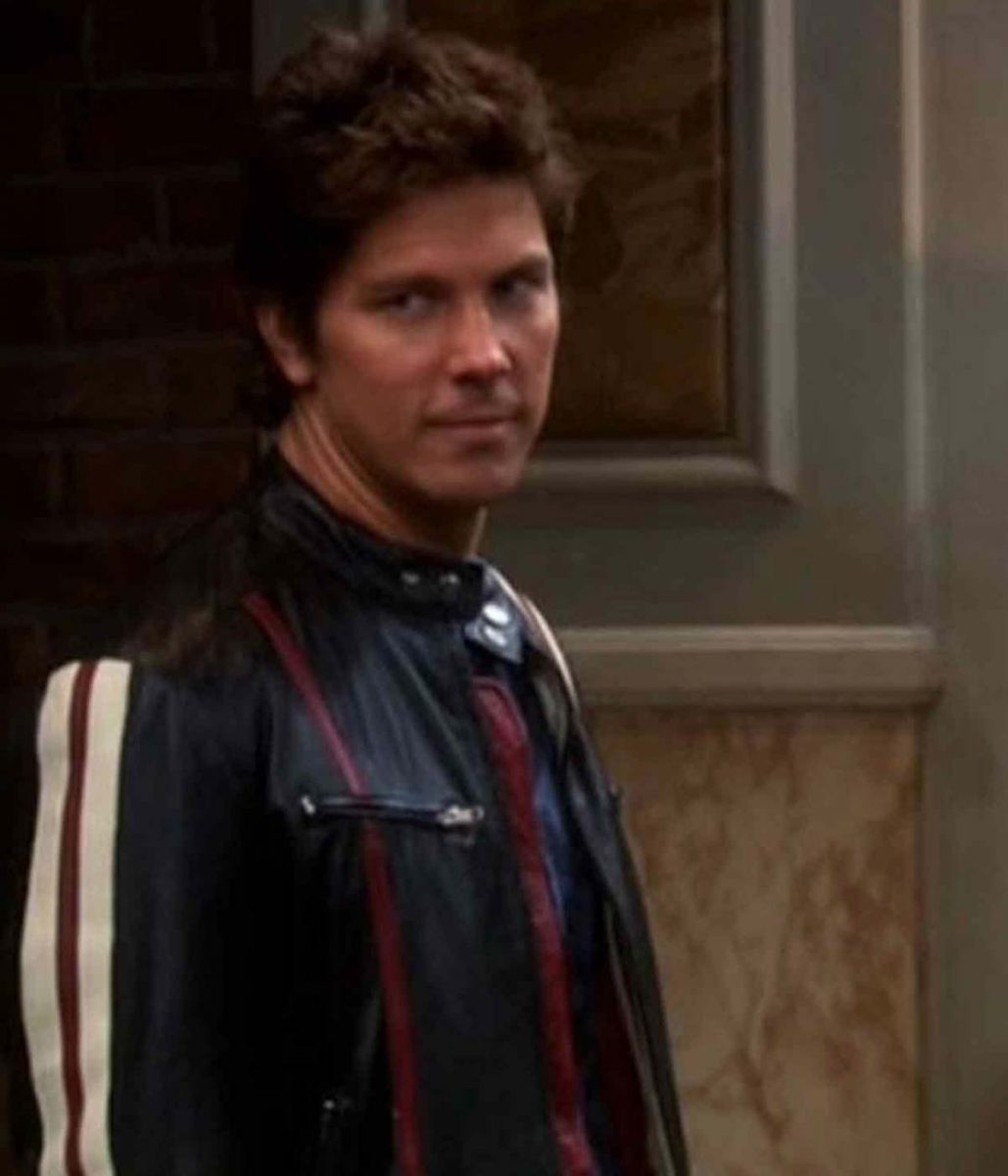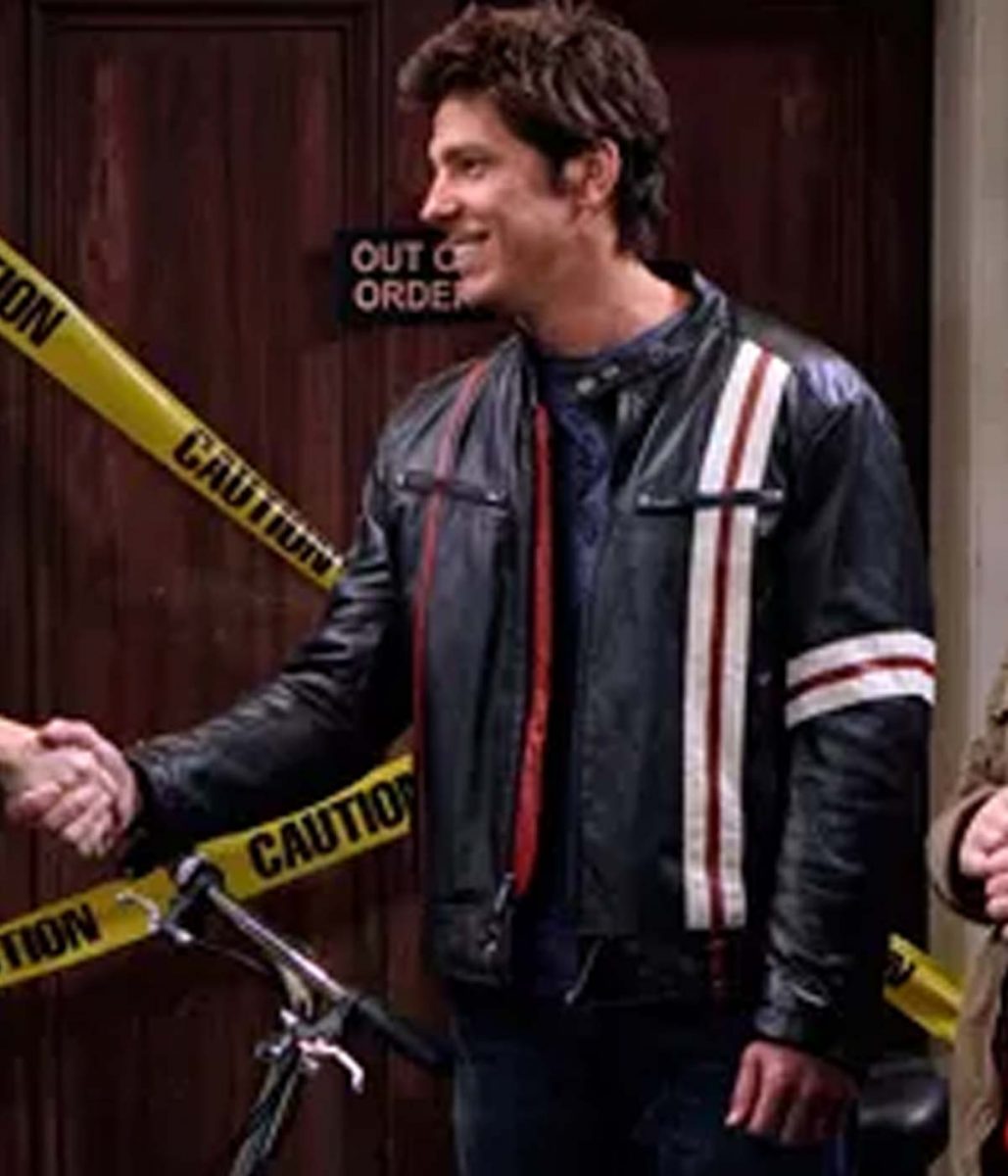 The Big Bang Theory Dr. David Underhill Striped Black Biker Leather Jacket