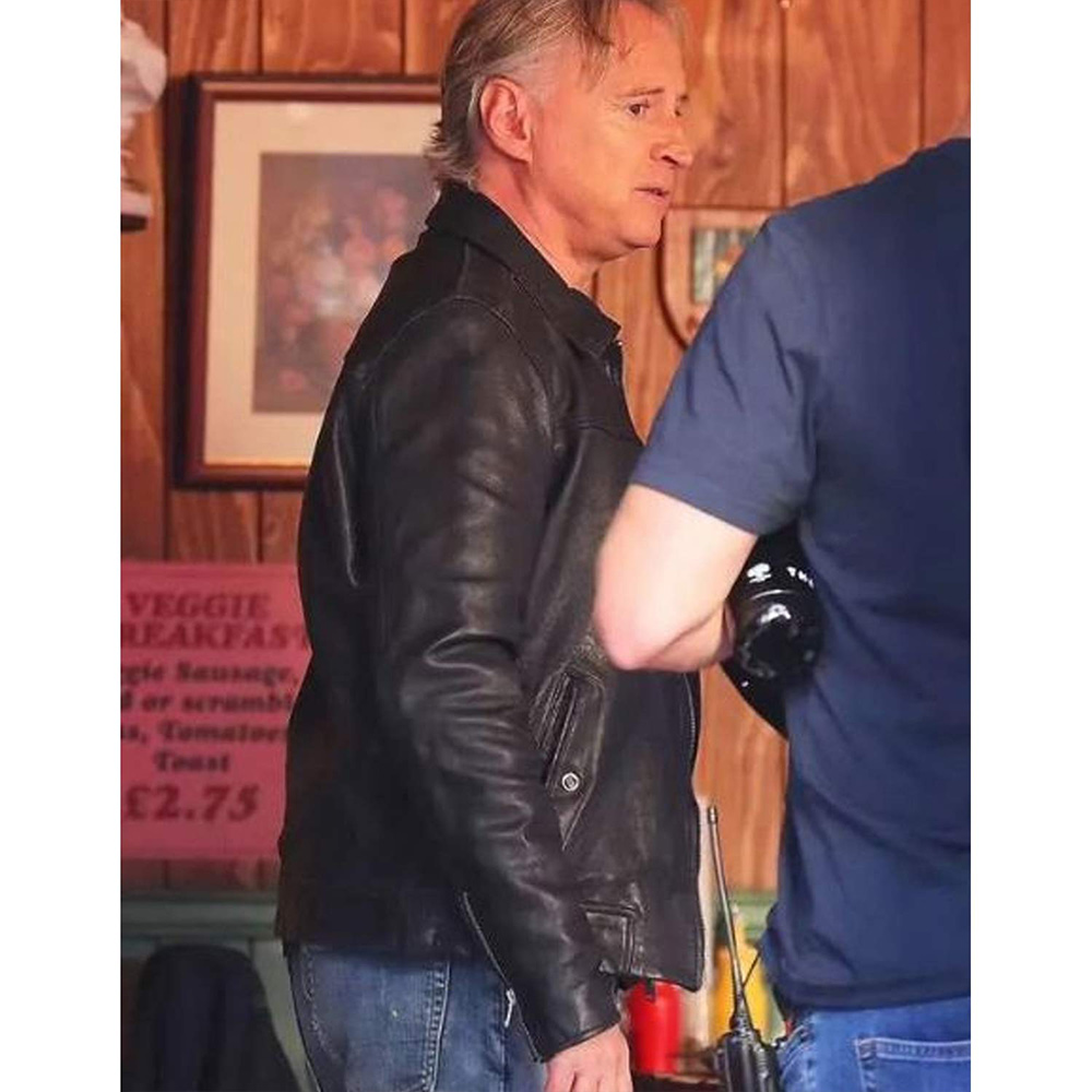 Mark Addy The Full Monty TV Show Dave Black Zip Up Leather Jacket