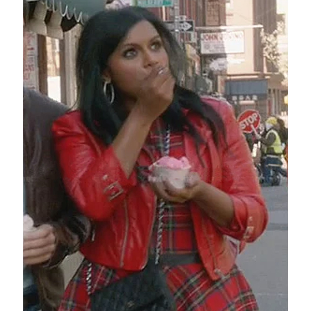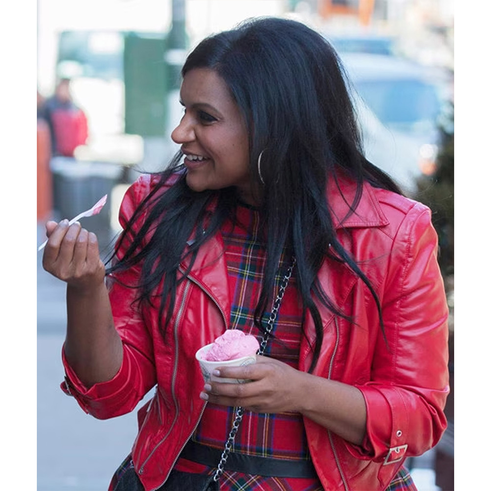 Retain your fashion game with the Mindy Lahiri Leather Jacket, a captivating garment inspired by the drama series The Mindy Project Season 2. Meticulously fashioned from genuine leather, this jacket seamlessly blends durability with refinement. It boasts a lapel-style collar that exudes classic charm, while the branded YKK zipper front closure evokes a sense of enduring allure. The long sleeves with belted cuffs offer a tailored silhouette that complements your figure flawlessly. Enhanced by two outer pockets and an interior pocket, this Mindy Project S02 Mindy Kaling Red Leather Jacket marries functionality with grace. The meticulous craftsmanship is evident in the exquisite stitching, making Mindy Lahiri Leather Jacket a symbol of polished sophistication.
