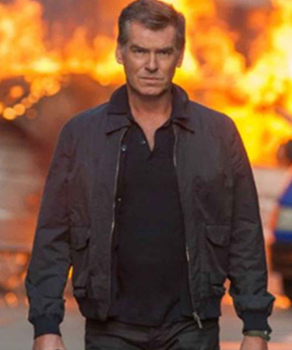 The Pierce Brosnan the November man jacket is made from high-quality pure cotton. The jacket is available in a mesmerizing black color which gives it an innovative and mysterious look. The collar of the jacket is a shirt style. It has a YKK front zipper closure. A soft viscose inner lining of the jacket keeps you warm and relaxed. The sleeves of the Peter Devereaux jacket are full and fitted with rib-knitted cuffs. A rib-knitted waistline is given for a fitted look. The jacket has two large flap side waist pockets, two inside pockets for keeping stuff. The fine quality stitching of the Pierce Brosnan, the November man jacket, makes it durable and comfortable to wear.