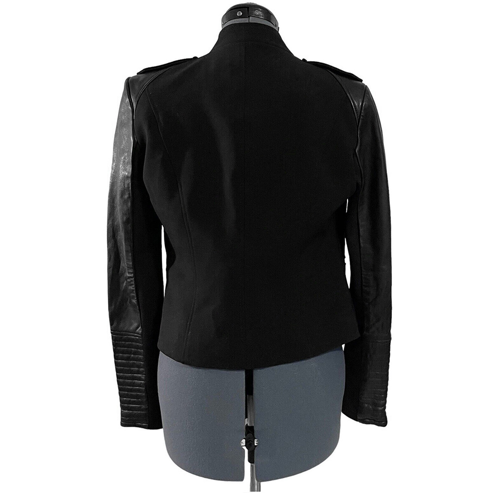 Introducing the Rebekah Mikaelson Jacket, a unique fusion of style and comfort inspired by ‘The Originals’ Season 1 and elegantly worn by Claire Holt as Rebekah Mikaelson. This jacket features a luxurious wool body and genuine leather sleeves, offering a perfect blend of warmth and sophistication. The lapel-style collar and branded YKK zipper front closure add a touch of elegance to this remarkable piece. With long and fitting sleeves featuring zipper cuffs, the Rebekah Mikaelson Jacket offers both style and flexibility. It’s as practical as it is fashionable, with two outside pockets and one inside pocket for your convenience. The soft viscose lining ensures comfort, and fine quality stitching of The Originals Claire Holt Jacket reflects meticulous craftsmanship.