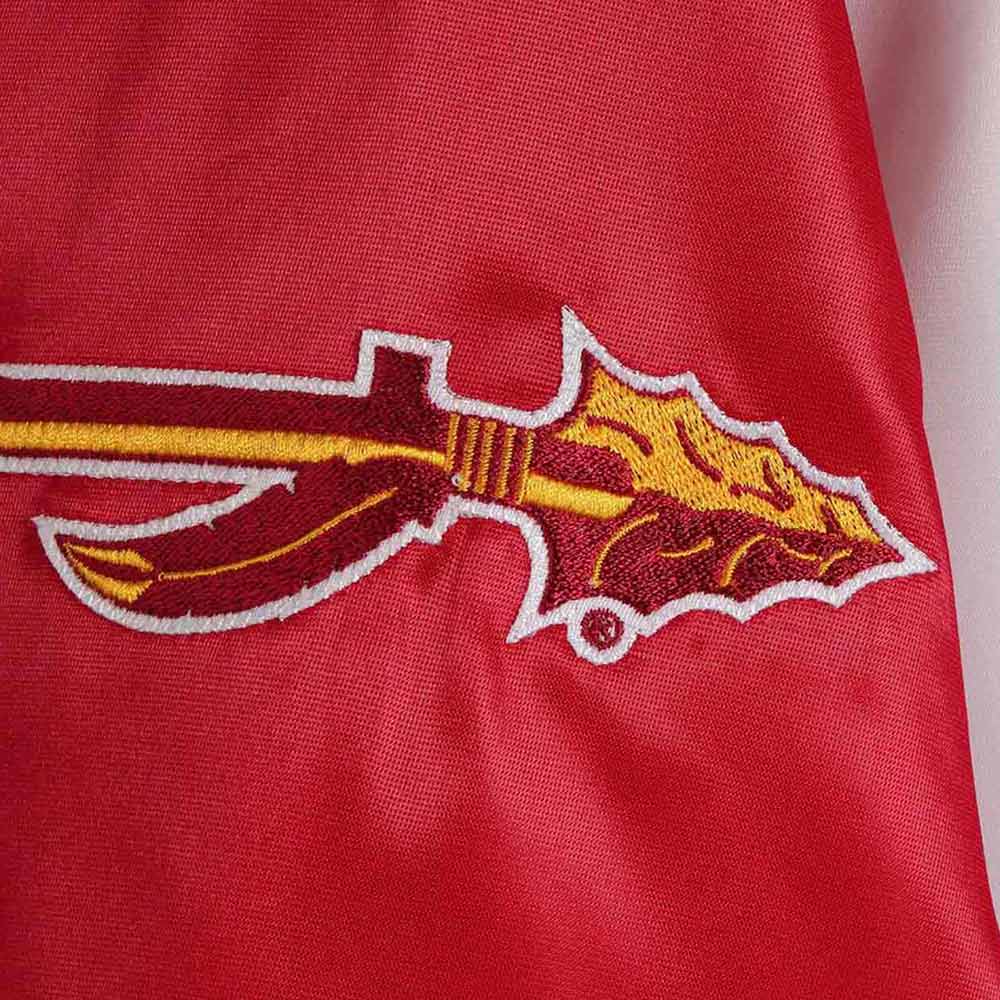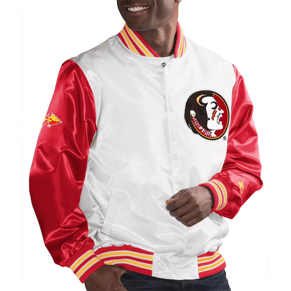 The Florida State Seminoles the Rookie jacket is made up of high-quality satin. The jacket is available in a glorious white and red color combination, which gives it an innovative and look. The jacket has shirt style collar. The jacket has branded YKK zipper front closure. A soft inner viscose lining of the jacket keeps you warm and relaxed. The sleeves of Rookie Florida State Seminoles Red and White jacket are long with rib knitted cuffs. The jacket has two inner and two side pockets. The fine quality stitching of Florida State Seminoles the Rookie jacket is comfortable and desirable to wear. The jacket is an ideal choice to wear in parties.