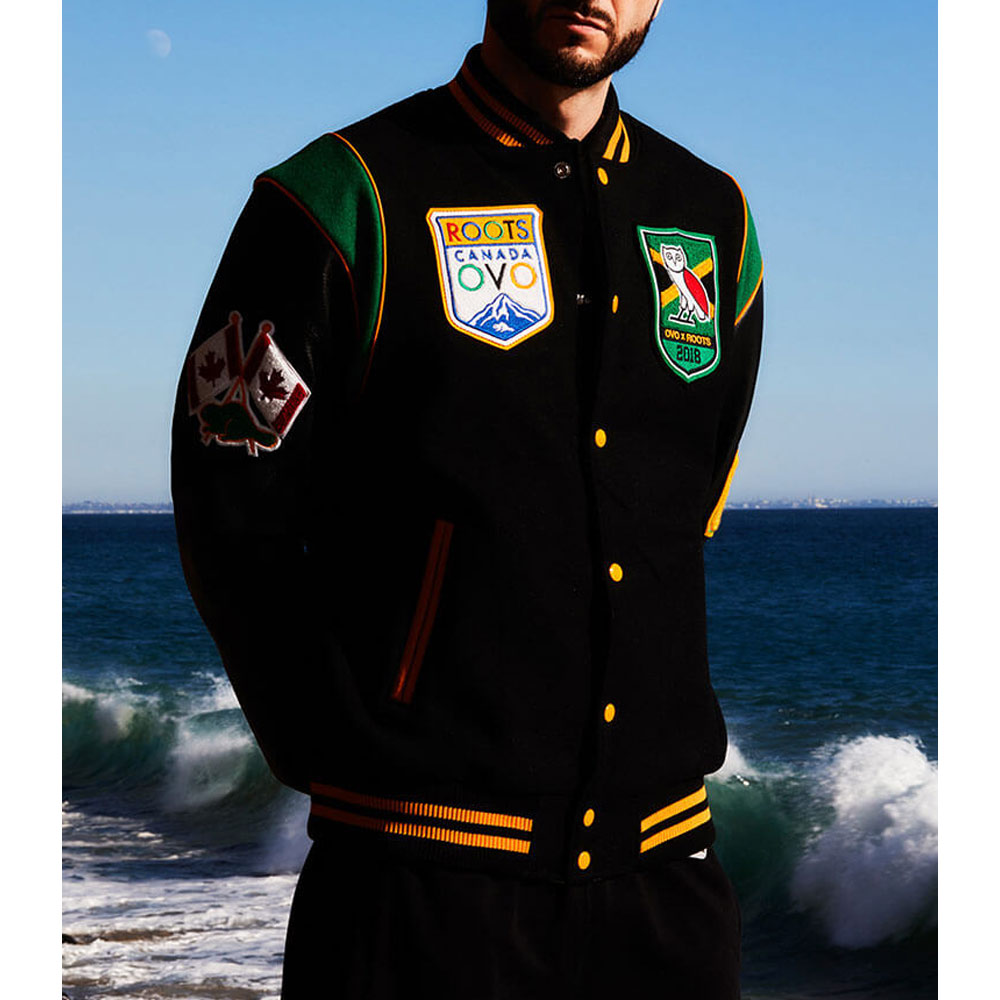 - Logo: The Roots OVO logo on the chest, back, and sleeve