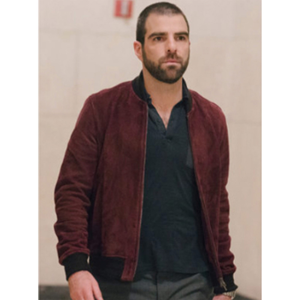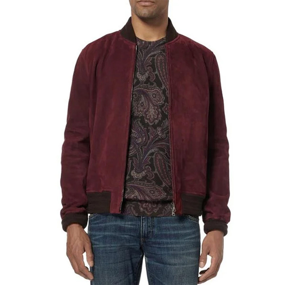 Zachary Quinto The Slap Harry Bomber Burgundy Suede Jacket