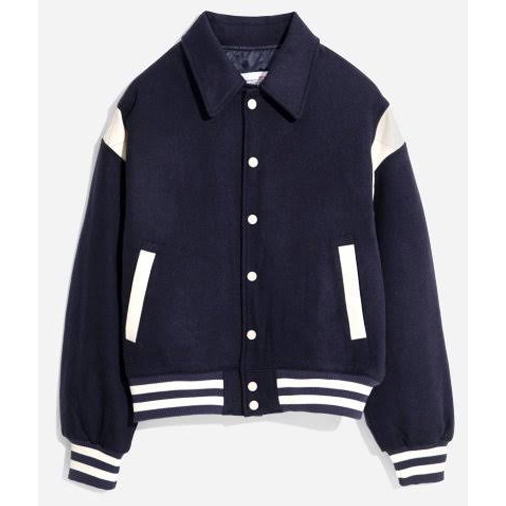 Immerse yourself in the charm of “The Summer I Turned Pretty” with the Steven Varsity Jacket, a woolen masterpiece worn by Sean Kaufman as Steven. Crafted in timeless navy blue, this jacket pays homage to a nostalgic era. The snap-tab buttoned closure adds a touch of sophistication, complemented by the classic shirt-style collar. Long sleeves with rib-knitted cuffs and hemline create a tailored silhouette that transcends seasons. Fine stitching details showcase the The Summer I Turned Pretty Sean Kaufman Varsity Jacket meticulous craftsmanship. Two side waist pockets and one inner pocket offer both practicality and style. With viscose lining, this Steven Varsity Jacket invites you to embrace a world where classic elegance meets the allure of unforgettable summers.