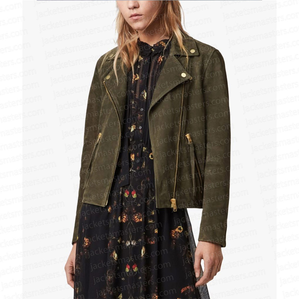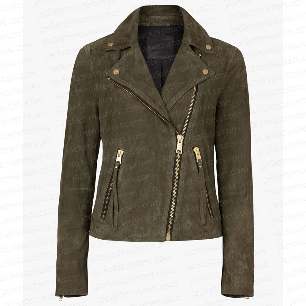 Unleash your fashion prowess with the Jenna Suede jacket, skillfully crafted from premium quality suede leather. Its majestic green color exudes innovation and boldness, creating an eye-catching look. This Teacher Sheridan Smith Green Suede jacket features a lapel style collar and a branded YKK zipper front closure for a touch of style and convenience. The viscose inner lining ensures warmth and relaxation, while the long sleeves with zipper cuffs add a sophisticated touch. With two inner and two side pockets, this Jenna Suede jacket offers practicality alongside comfort. The fine quality stitching ensures a comfortable and desirable fit, making it an ideal choice for any party.