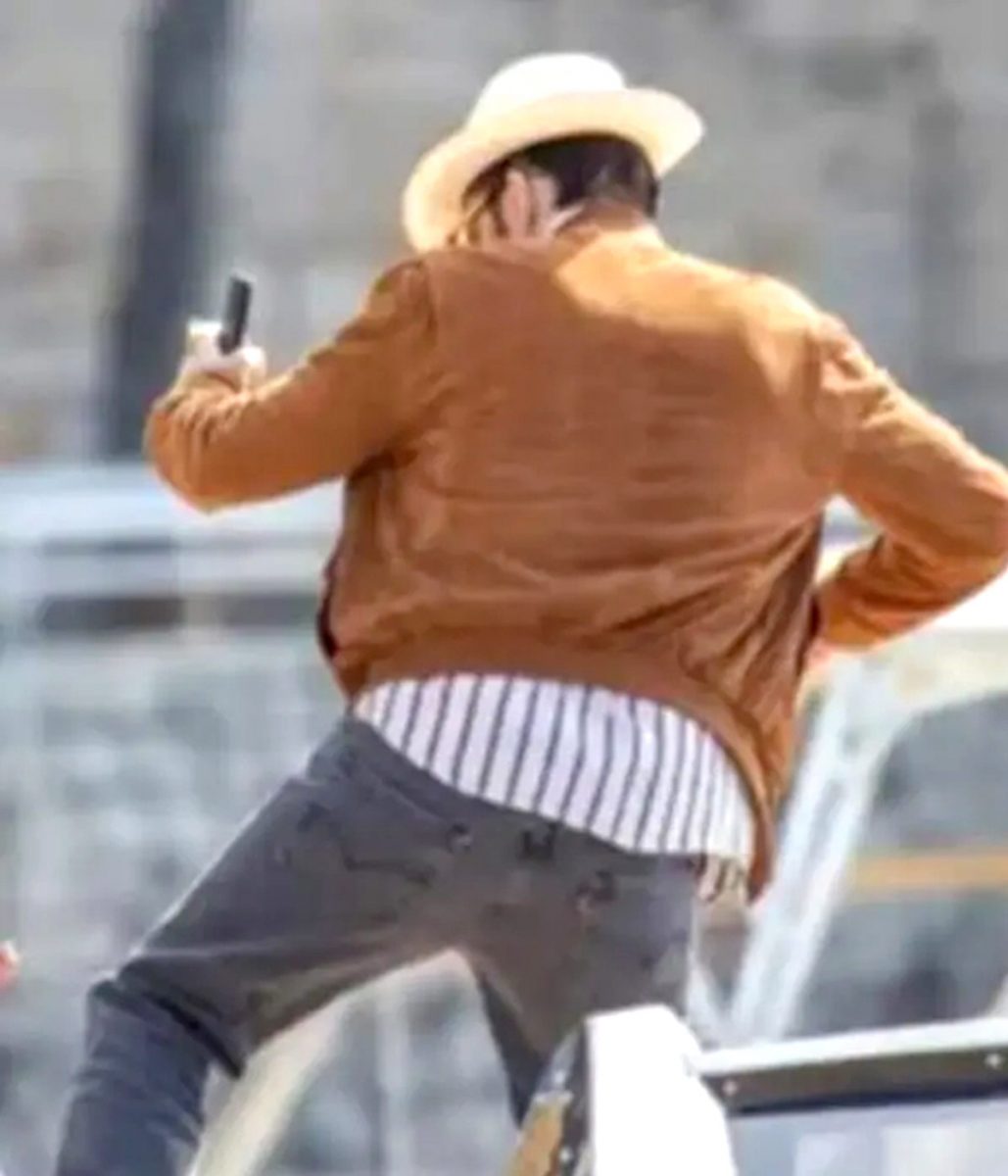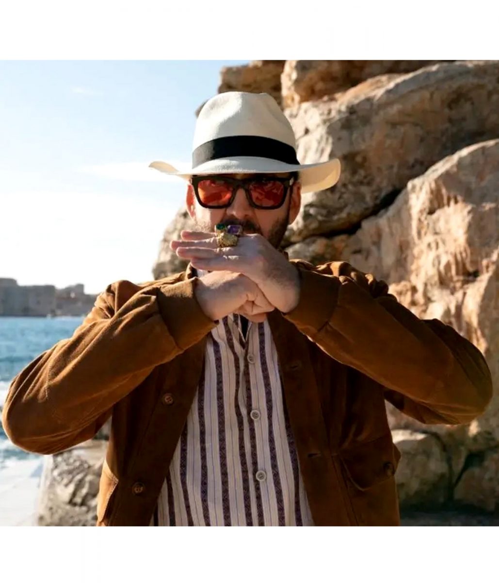 The Unbearable Weight of Massive Talent Nick Cage Bomber Suede Jacket