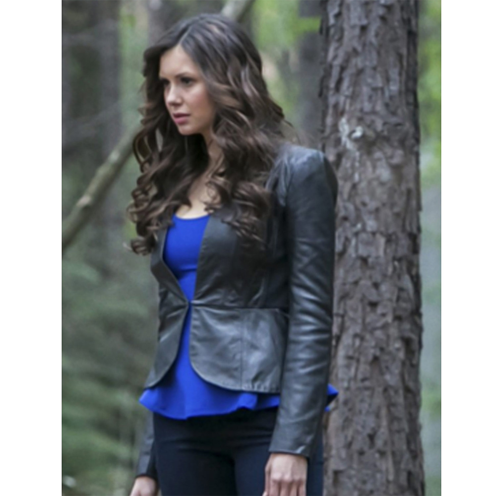 Nina Dobrev Vampire Diaries Season 4 Elena Gilbert Black Leather Blazer