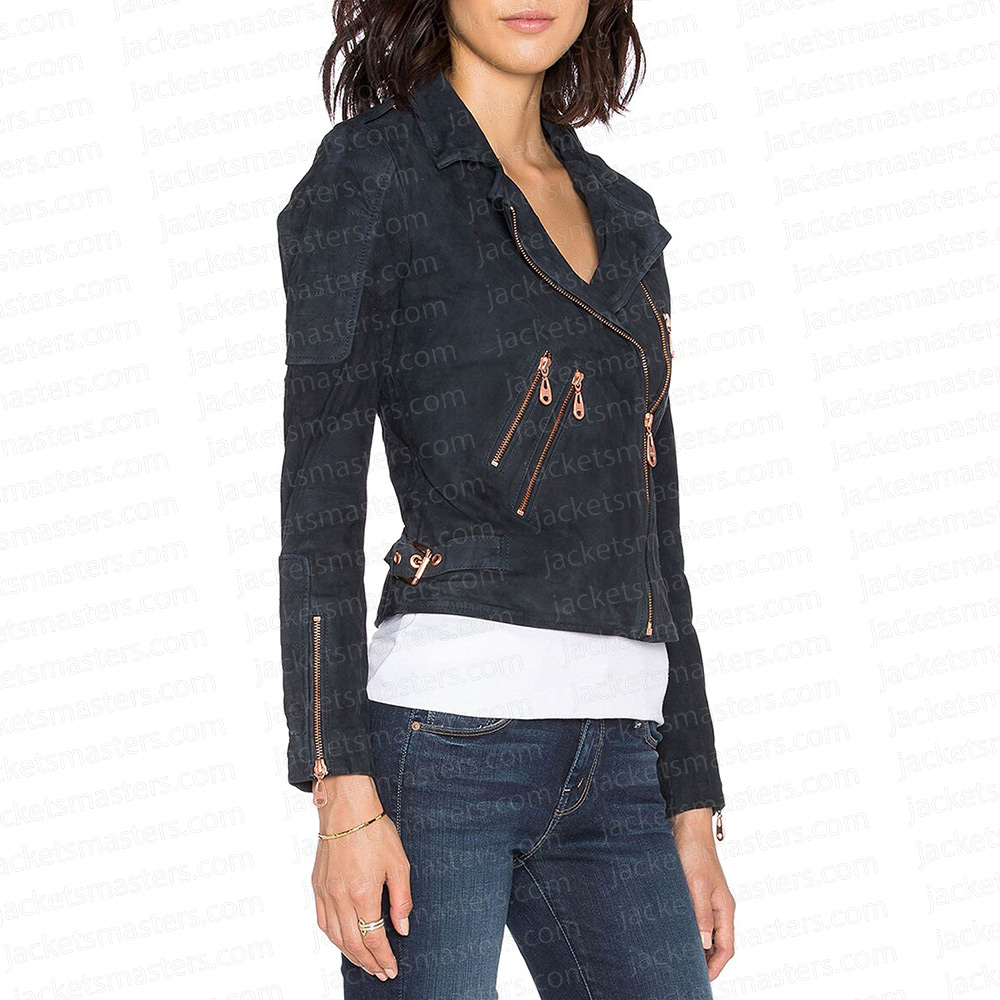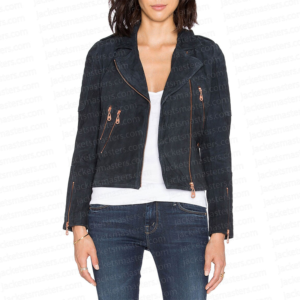 The Vampire Diaries S07 Bonnie Bennett Suede Blue Leather Jacket