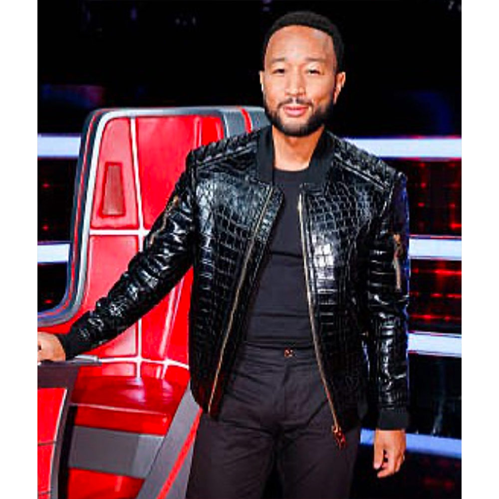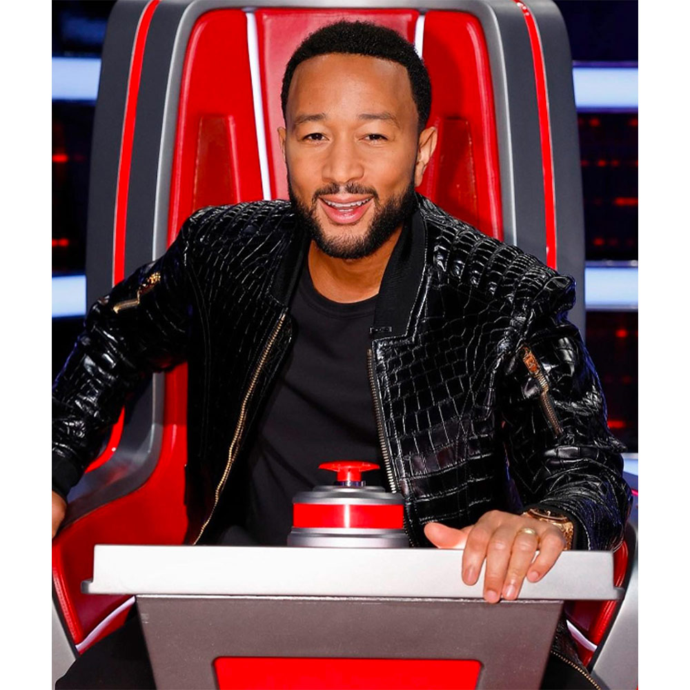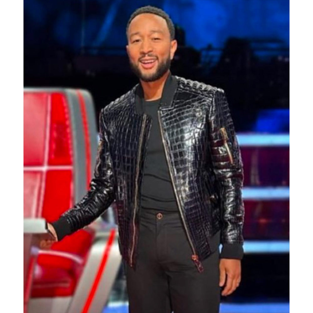 The Voice 2023 John Legend Black Leather Bomber Jacket