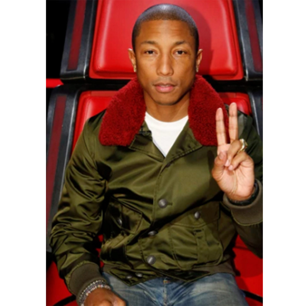 Introducing the Pharrell Williams Green Jacket, a symbol of contemporary style and versatility. This iconic piece, inspired by the drama series “The Voice” and famously worn by Pharrell Williams, boasts a unique fusion of fashion elements. Crafted from durable nylon, it is as functional as it is stylish. The vibrant green color adds an element of vibrancy to your wardrobe. The fur-style collar introduces a touch of luxury, while the buttoned front closure seamlessly marries fashion with functionality. Long sleeves with rib-knitted cuffs offer both comfort and style. The rib-knitted hemline adds a dash of refinement. With two outer pockets and one inner pocket, this The Voice Pharrell Williams Green Twill Nylon Jacket combines utility with flair. Impeccable stitching runs through every seam, ensuring lasting quality. Designed for both genders, it embodies versatility and contemporary elegance.