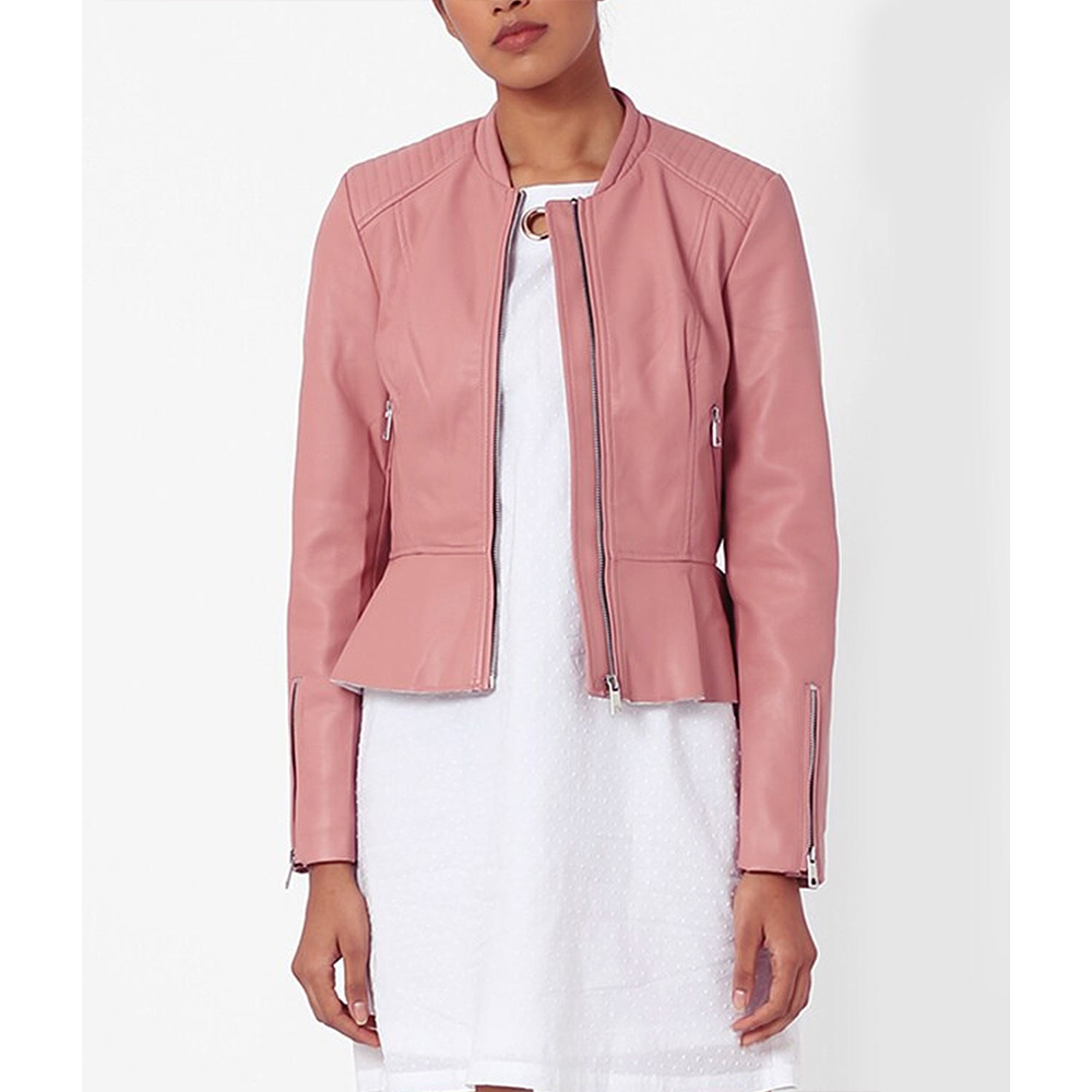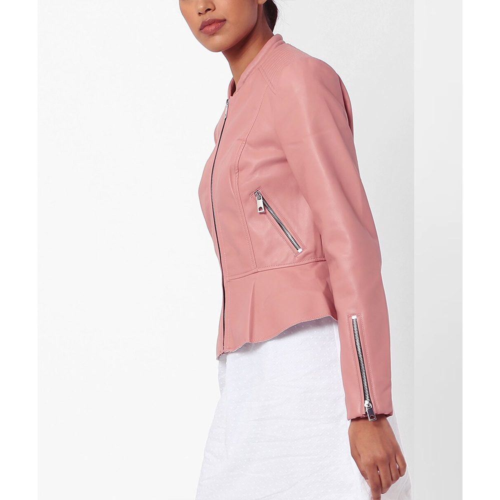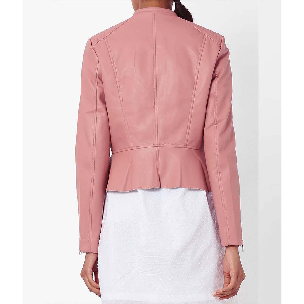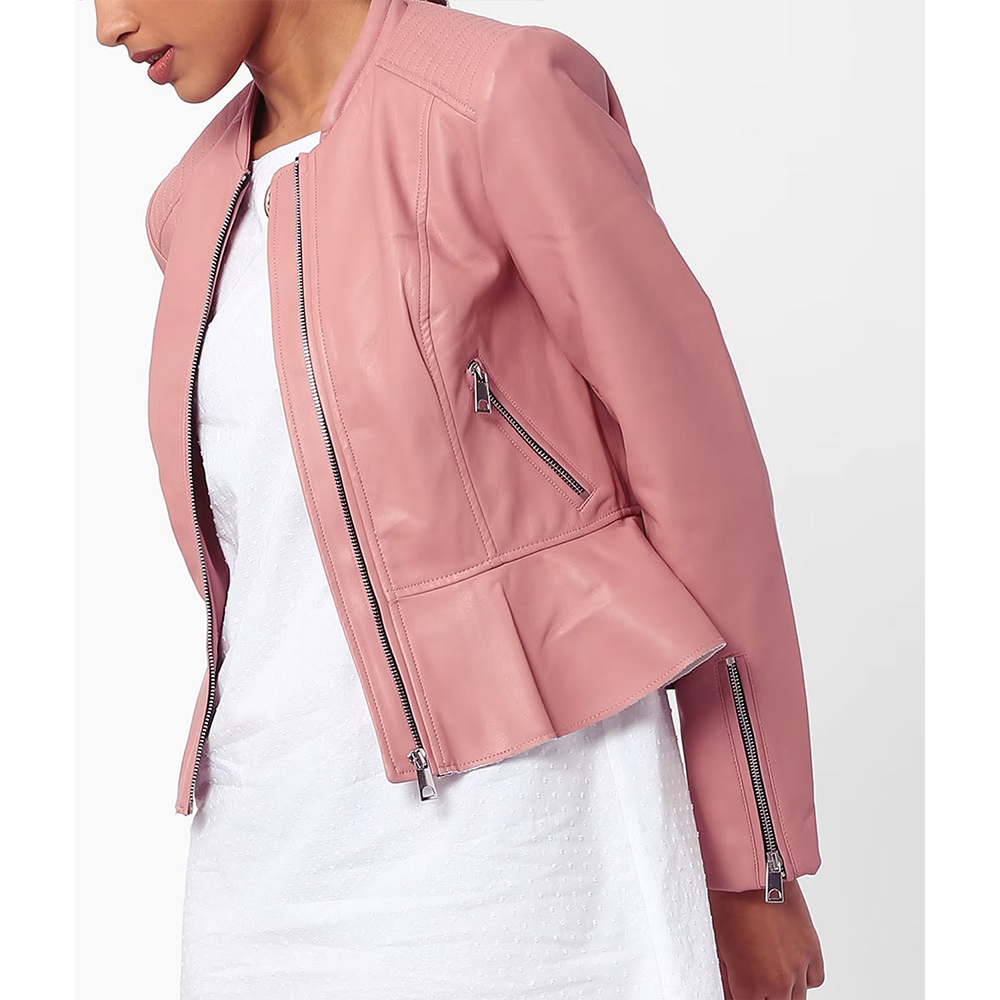 Embrace envy-inducing style with Esther Valentine leather jacket, designed in a mesmerizing pink color that guarantees attention. Unleash your fashion-forward side with its collarless style collar, while the branded YKK front zipper closure ensures a secure fit. This jacket’s unique design redefines modern elegance, making it your go-to choice for a memorable night out with friends. With long sleeves and open hem cuffs, The Young and The Restless Kate Linder pink leather jacket offers a perfect blend of comfort and edginess. Stay warm and comfortable with the soft viscose inner lining and stay organized with the functional waist zipper pockets and internal pockets.