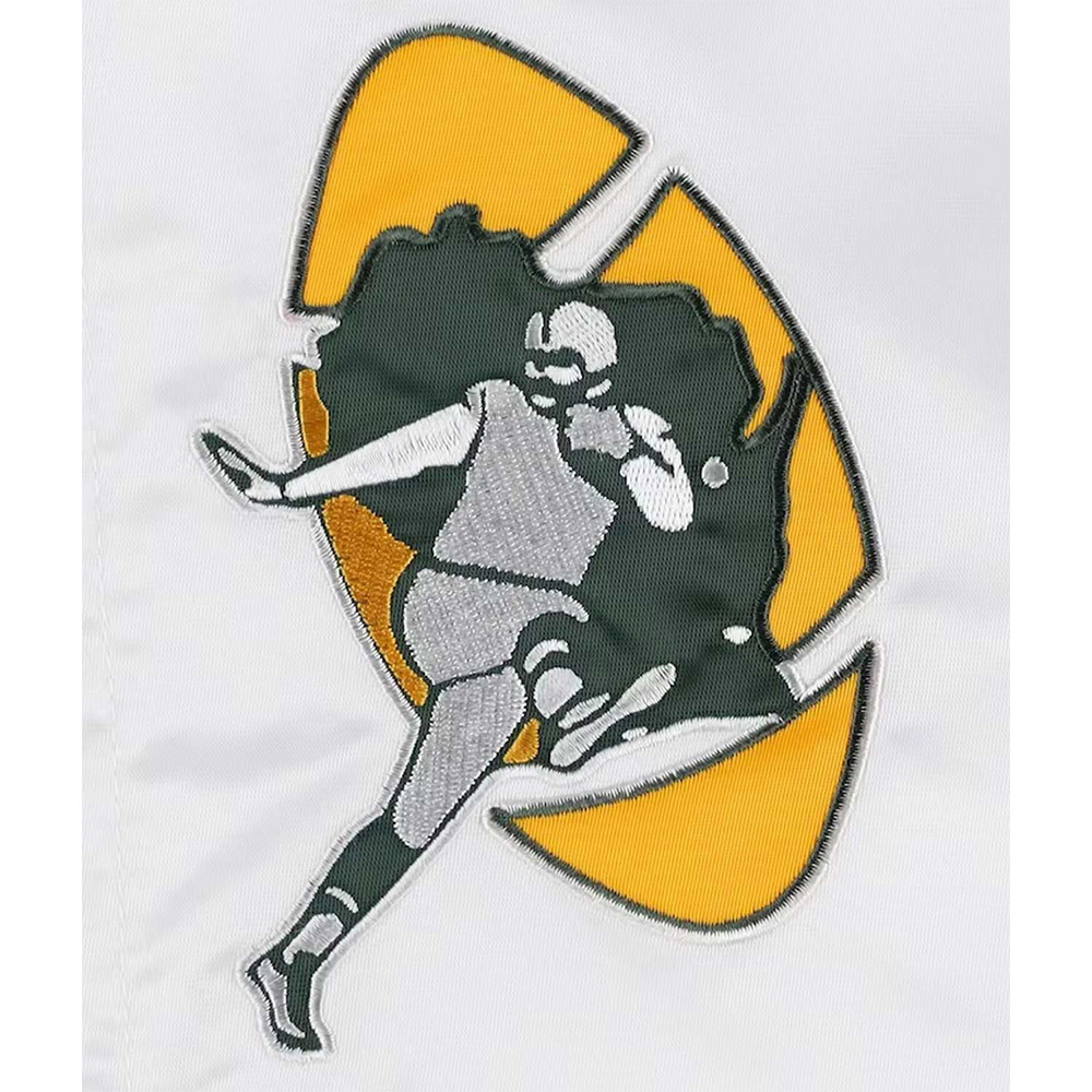 Starter White Green Bay Packers Throwback Warm Up Pitch Full-Snap Satin Jacket