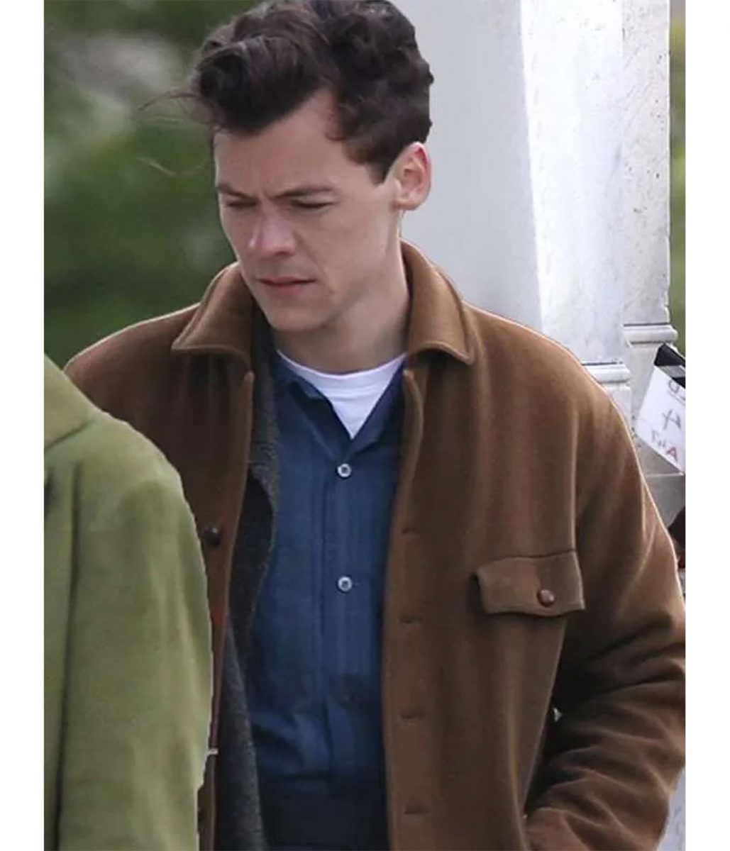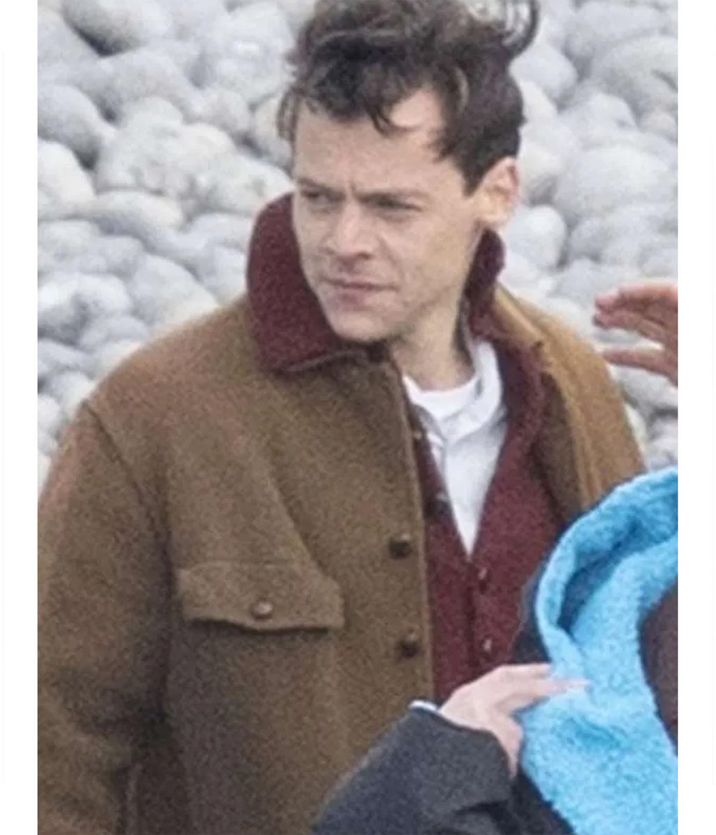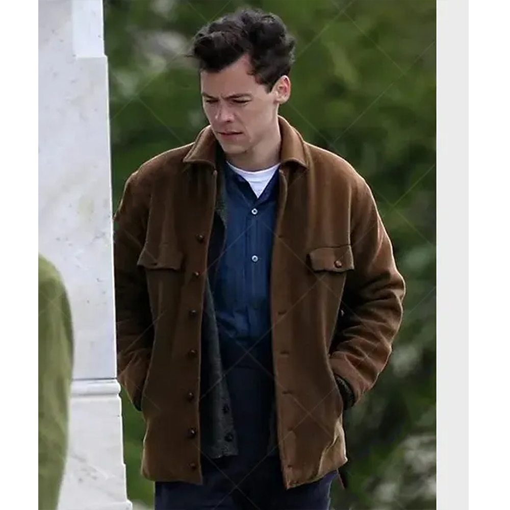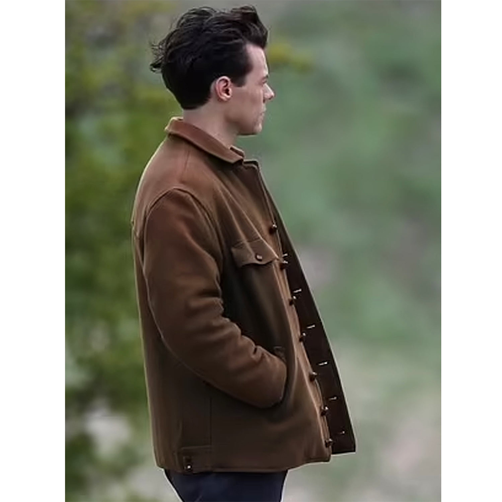 The My Policeman Harry Styles Brown jacket is made up of wool. The jacket is available in a majestic brown color, which gives it an innovative and enchanted look. The jacket has lapel style collar. The jacket has buttoned front closure. A soft viscose lining of the jacket keeps you warm and relaxed. The sleeves of the Tom Burgess Brown Wool jacket are long with open hem cuffs. The jacket has two inner and two side pockets. The fine quality stitching of My Policeman Harry Styles Brown jacket makes it durable and desirable to wear. The jacket is an ideal choice to wear in parties.