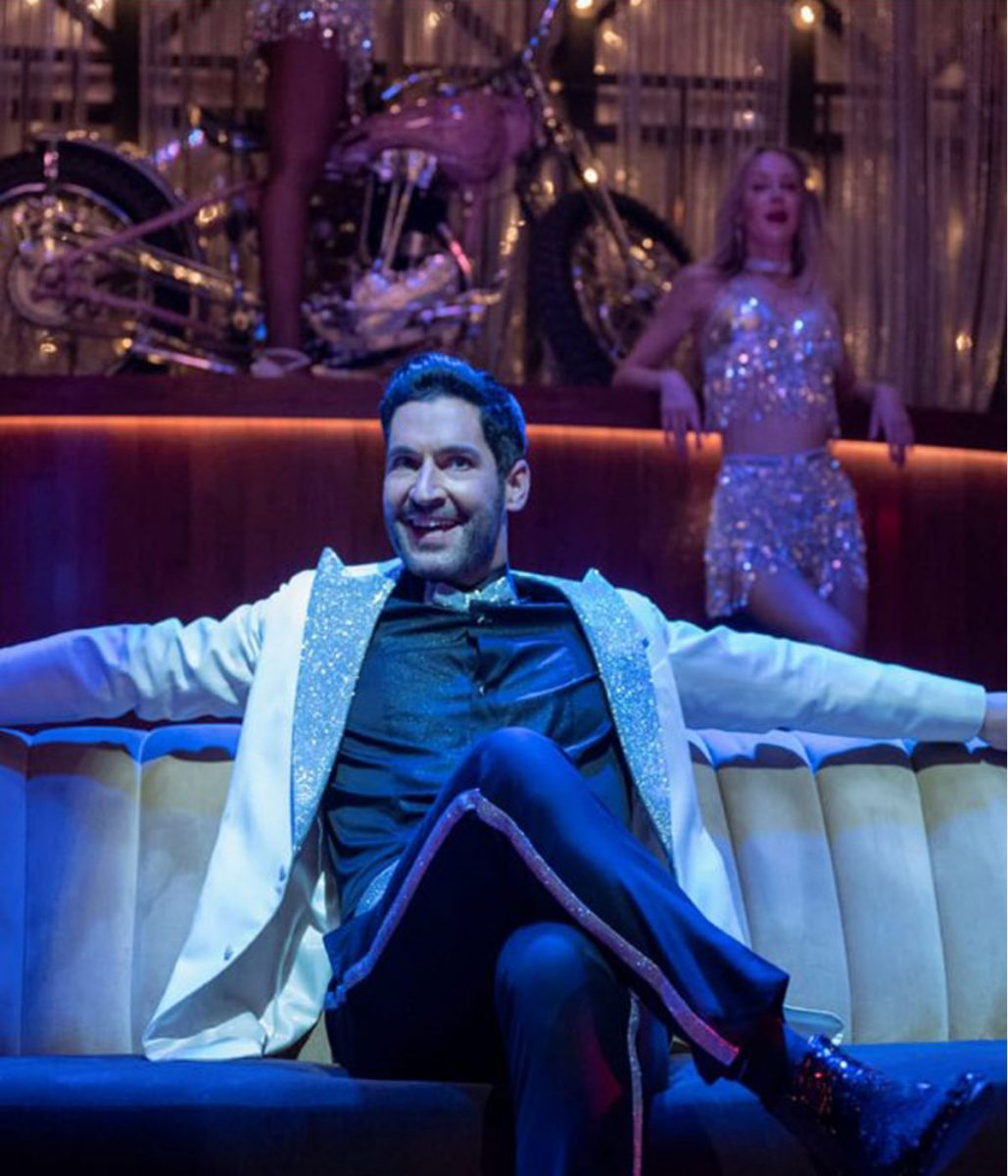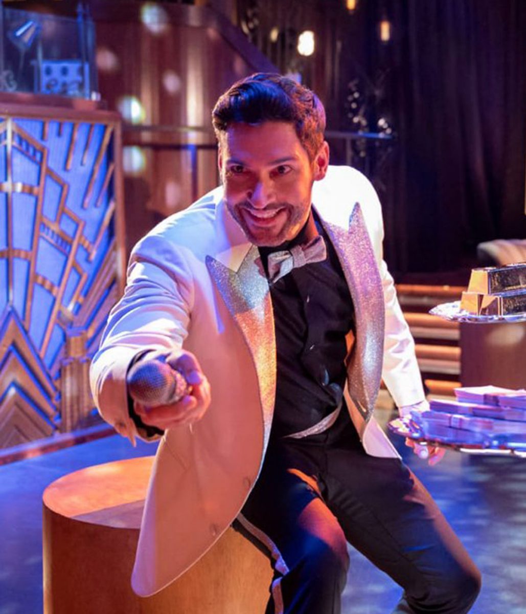 Tom Ellis Lucifer TV Show Morningstar White Blazer